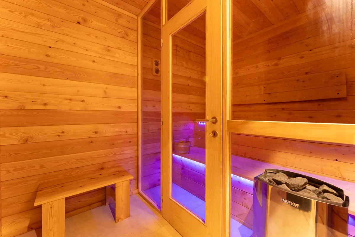 Le tout est agrémenté d’un espace bien-être avec sauna et d’une salle de cinéma.