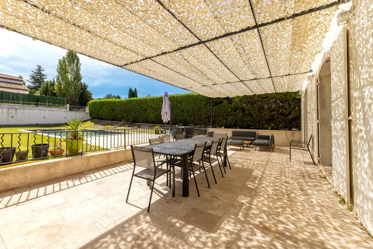 L’Office Immobilier de Cabriès vous présente à la vente une maison moderne de 4 chambres avec piscine, dépendance et prestations de qualité.