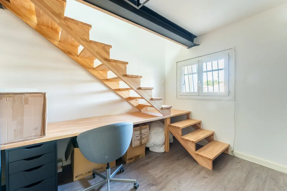 La maison s'étend sur une surface totale de 118m² (88m² Carrez). Au rez-de-chaussée, profitez d’un séjour lumineux donnant sur une terrasse, d’une cuisine moderne équipée sur mesure, de deux chambres avec accès direct au jardin, d’un dressing aménagé, d'un bureau, et d’une salle de douche avec WC séparés.