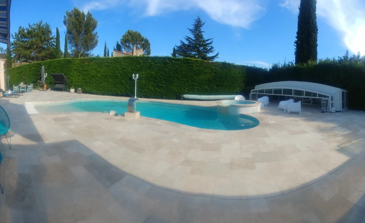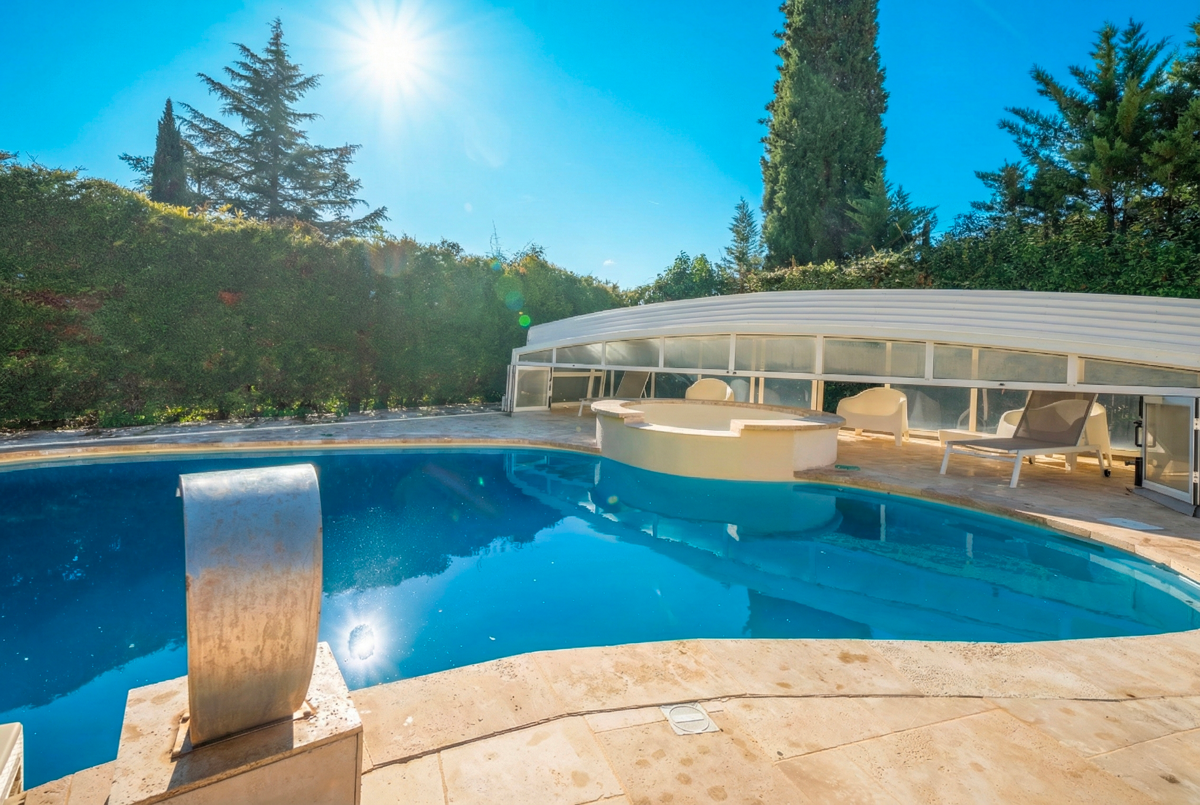 Une installation de protection permettant de chauffer la piscine est en place afin de permettre de se baigner presque toute l'année. On y trouve également un jacuzzi.