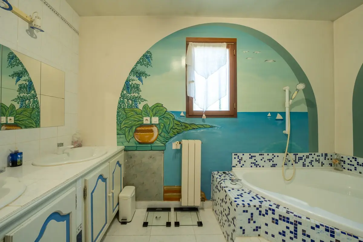 Le coin nuit propose quatre chambres, dont une suite parentale, chacune avec rangements intégrés, garantissant calme et intimité à tous les occupants. Trois salles de bain sont réparties judicieusement pour le confort de toute la famille.