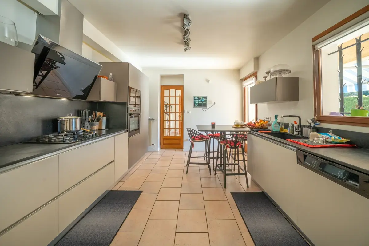 Édifiée en 1991 et en très bon état général, elle développe environ 233 m² habitables. Vous profiterez de deux salons spacieux et lumineux, ouverts sur la terrasse et le jardin, parfaits pour partager des moments conviviaux. La cuisine indépendante, aménagée et équipée, s’accompagne d’une arrière cuisine fonctionnelle, idéale pour le rangement et l’organisation du quotidien. Un bureau en mezzanine offre un espace de travail ou de loisirs supplémentaire.