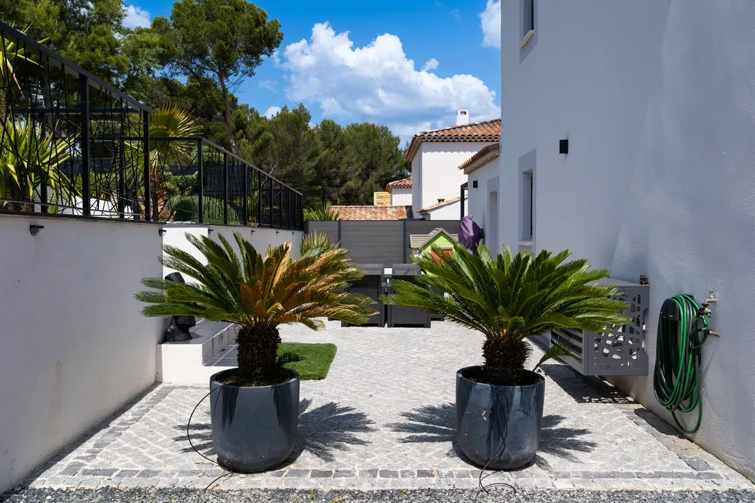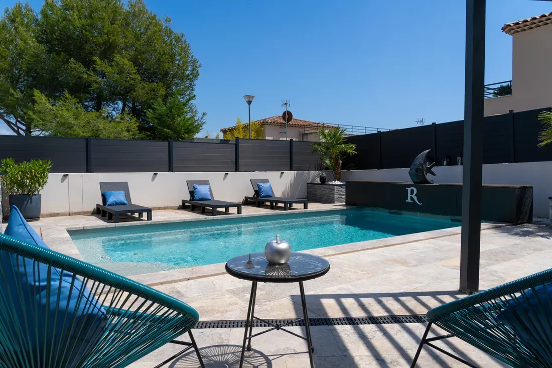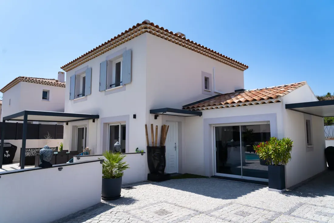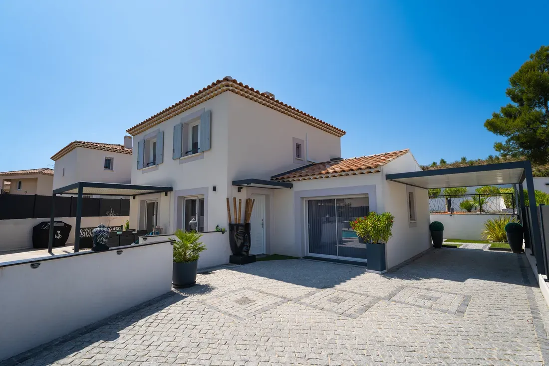 L’Office Immobilier de Calas (13480) vous présente à la vente en exclusivité : villa individuelle contemporaine de 2020, au calme, en impasse, avec piscine et pergola bioclimatique.