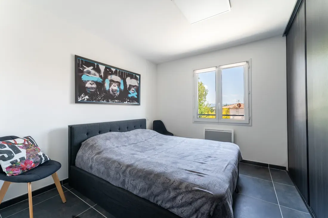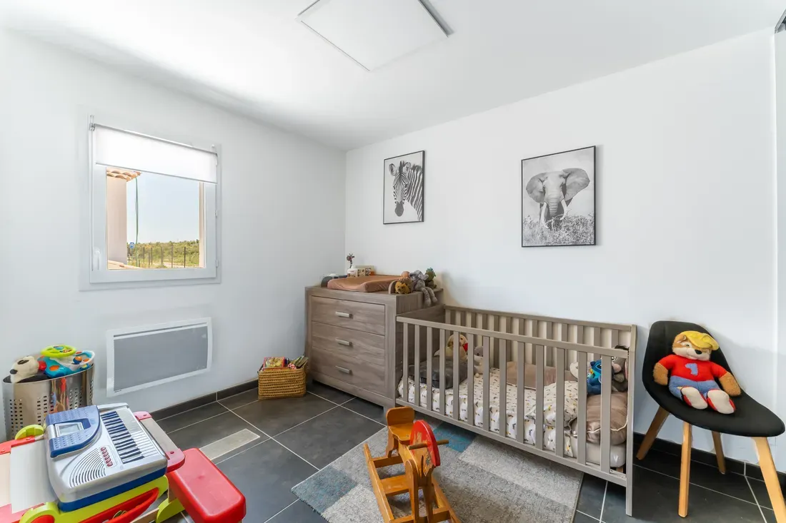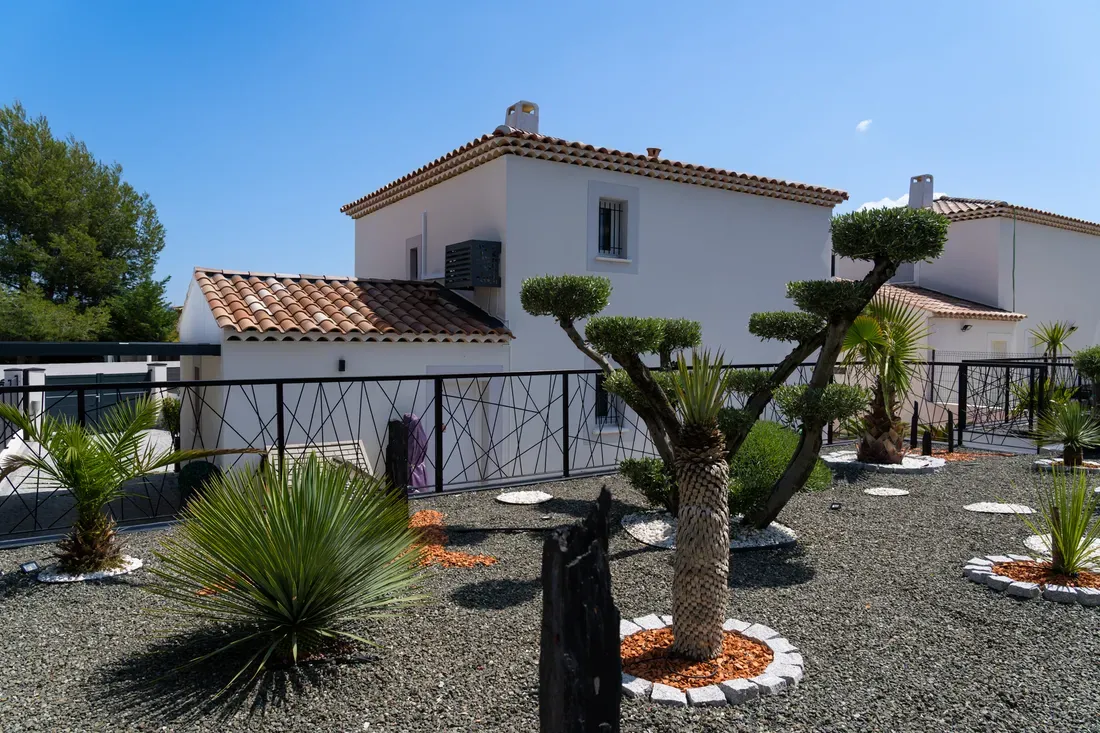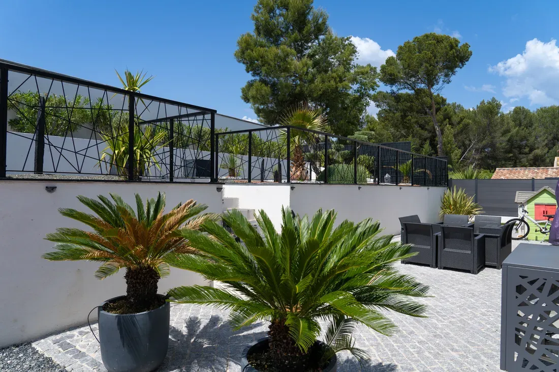 L’Office Immobilier de Calas (13480) vous présente à la vente en exclusivité : villa individuelle contemporaine de 2020, au calme, en impasse, avec piscine et pergola bioclimatique.