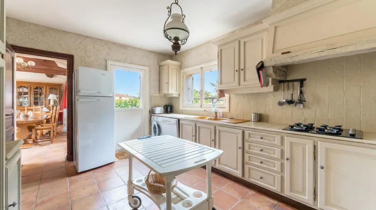 D’une surface habitable d’environ 165 m², cette villa construite en 1977 se compose de 6 pièces aux volumes généreux. Elle comprend un séjour lumineux ouvert sur l’extérieur, une cuisine indépendante et plusieurs espaces modulables offrant de nombreuses possibilités de réaménagement.