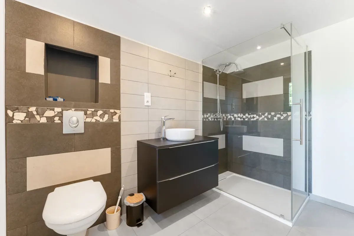 La maison dispose d'une isolation performante DPE en C et de panneaux solaires.