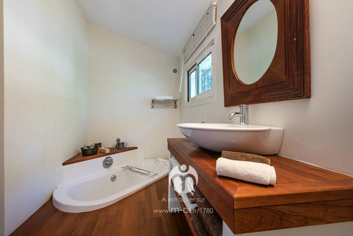 Vous retrouverez premièrement une très belle suite parentale avec baignoire, douche ouverte et double vasque, un grand dressing et une terrasse privative donnant accés au jardin.