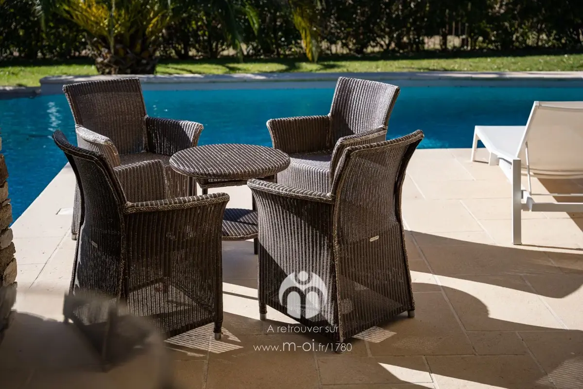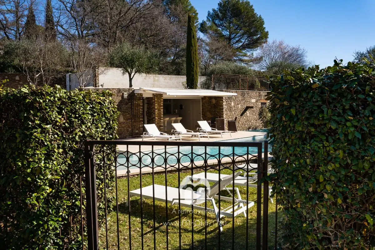 L’espace piscine, entièrement protégé et sécurisé, offre une magnifique piscine à débordement, une plage, une fontaine ainsi qu’un pool house équipé d’un bar et d’un coin douche.