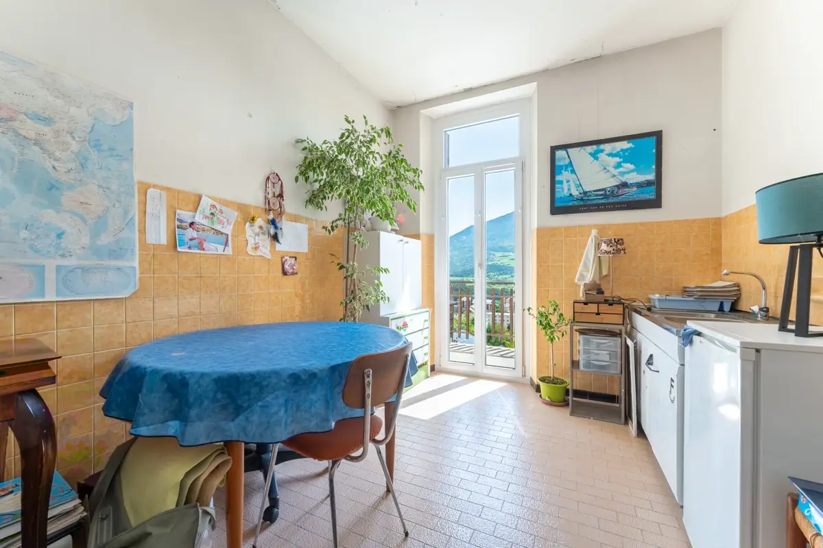 Idéalement située à Embrun, dans le quartier de la gare, cette maison bénéficie d'un environnement recherché avec un accès facile aux commodités à pied et une vue dégagée sur les toits d'Embrun et sur les montagnes.