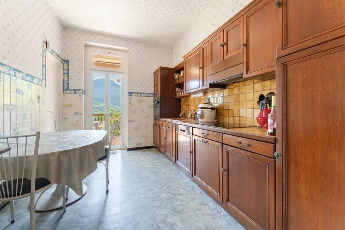 Cette maison lumineuse offre une superficie totale d'environ 239m². Elle se compose de deux cuisines séparées, d'un séjour prolongé par une véranda. Des rénovations sont à prévoir, bien que des améliorations, telles que le remplacement des fenêtres, aient déjà été réalisées.