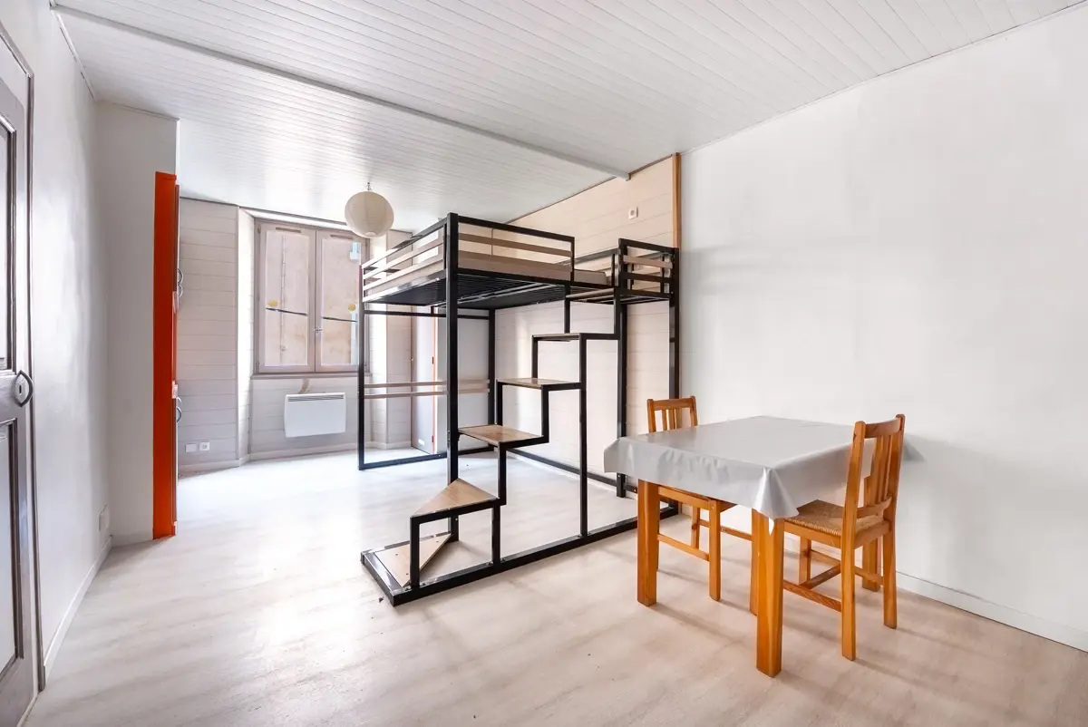 Cette bâtisse d'environ 285 m² est composée d'un local commercial, de deux studios habitables et de deux plateaux à réhabiliter possédant de beaux volumes.