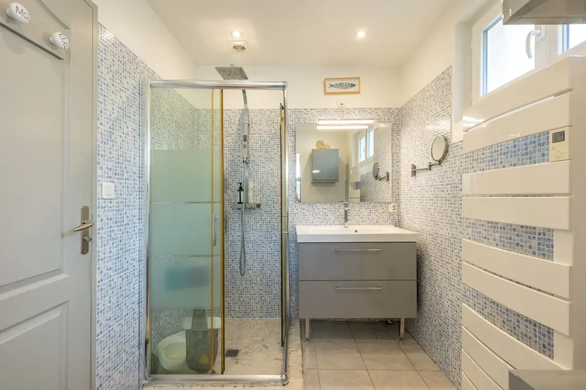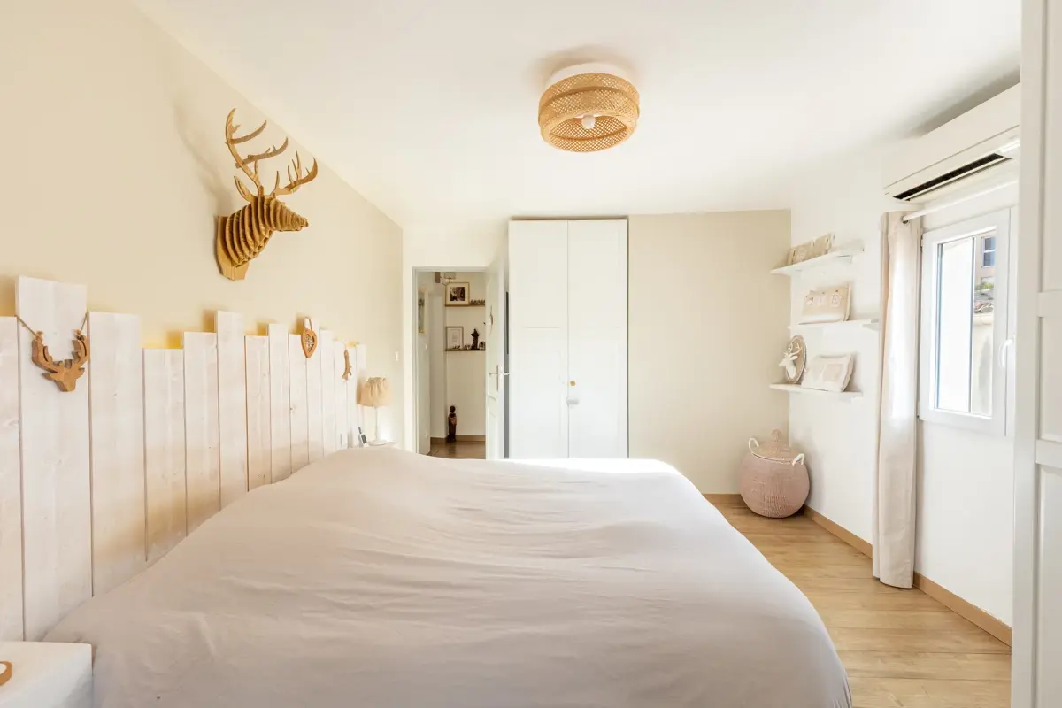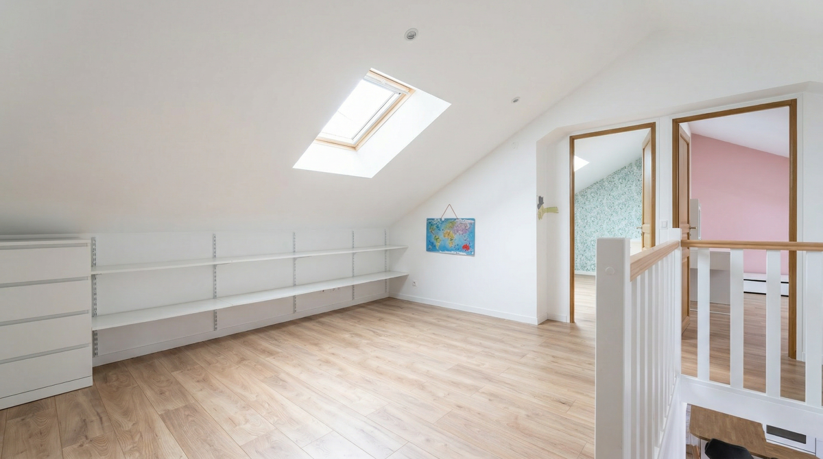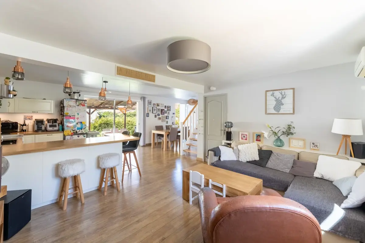 🏡 Description intérieure : La maison de 144 m² dispose d'un aménagement spacieux et bien pensé. Le rez-de-chaussée comprend une grande pièce de vie lumineuse avec cuisine ouverte, climatisation réversible, un espace parental avec salle d'eau et WC, une buanderie et une chambre d'amis. L'étage est dédié aux enfants avec deux chambres spacieuses, une salle de jeux et une deuxième salle d'eau. Le tout a été rénové avec goût.