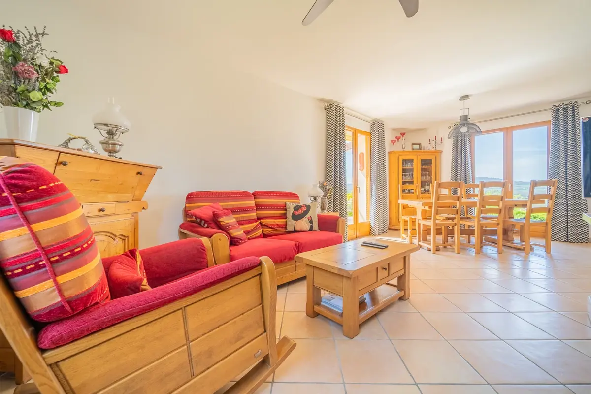 Située sur les hauteurs tranquilles du hameau de Vinci, cette propriété se trouve à 5 minutes du centre et de ses commodités, offrant un cadre de vie paisible et pratique.