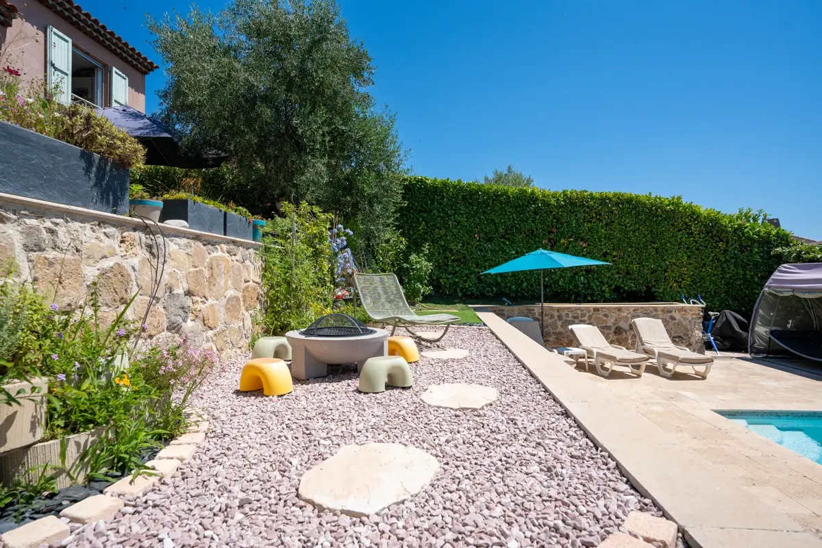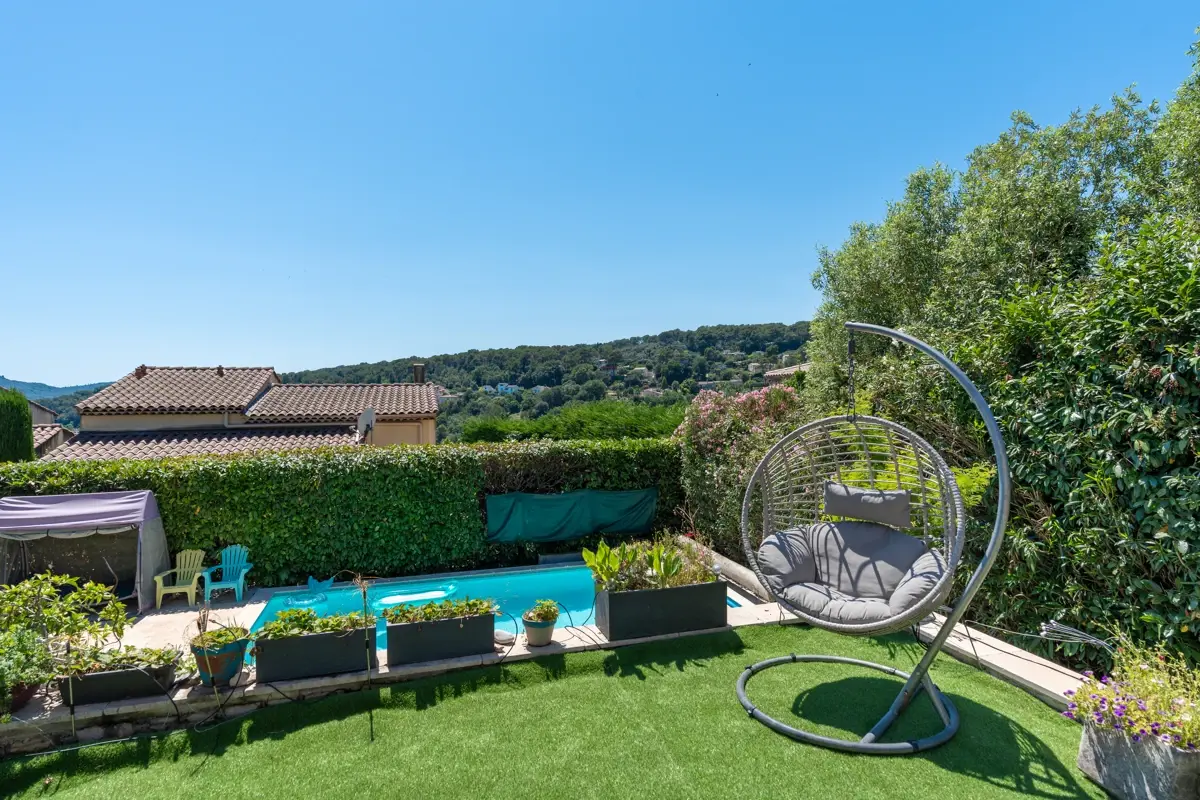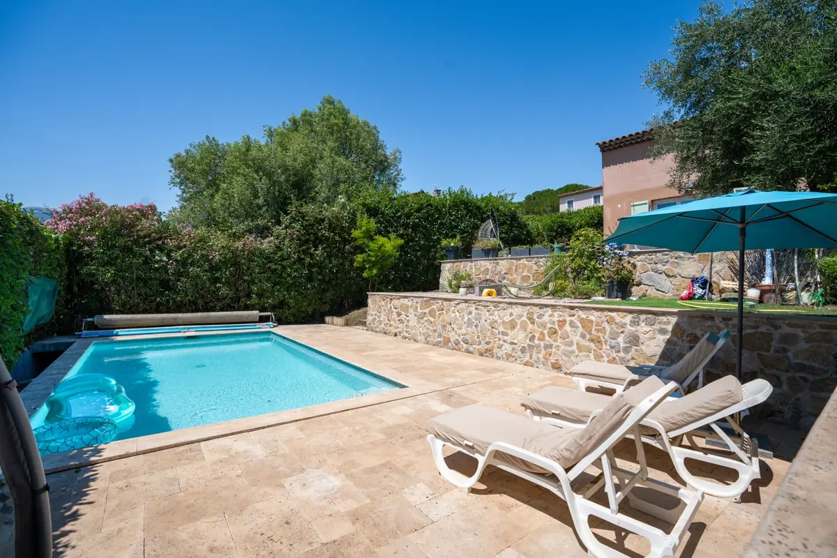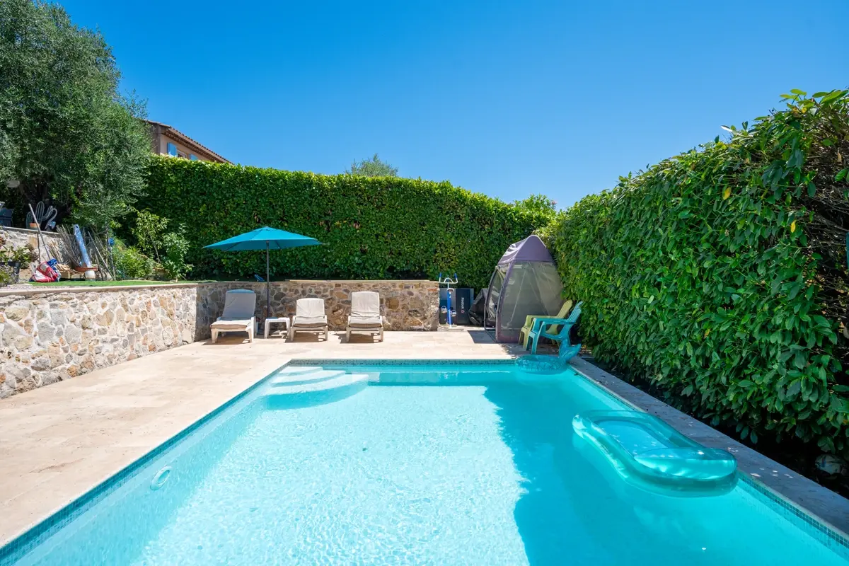 L’Office Immobilier de La Colle-sur-Loup vous présente à la vente en exclusivité une charmante maison en r+1 d'une surface de 115 m² (hors dépendance et garage) sur une parcelle de 512 m 2 avec piscine et sa dépendance.