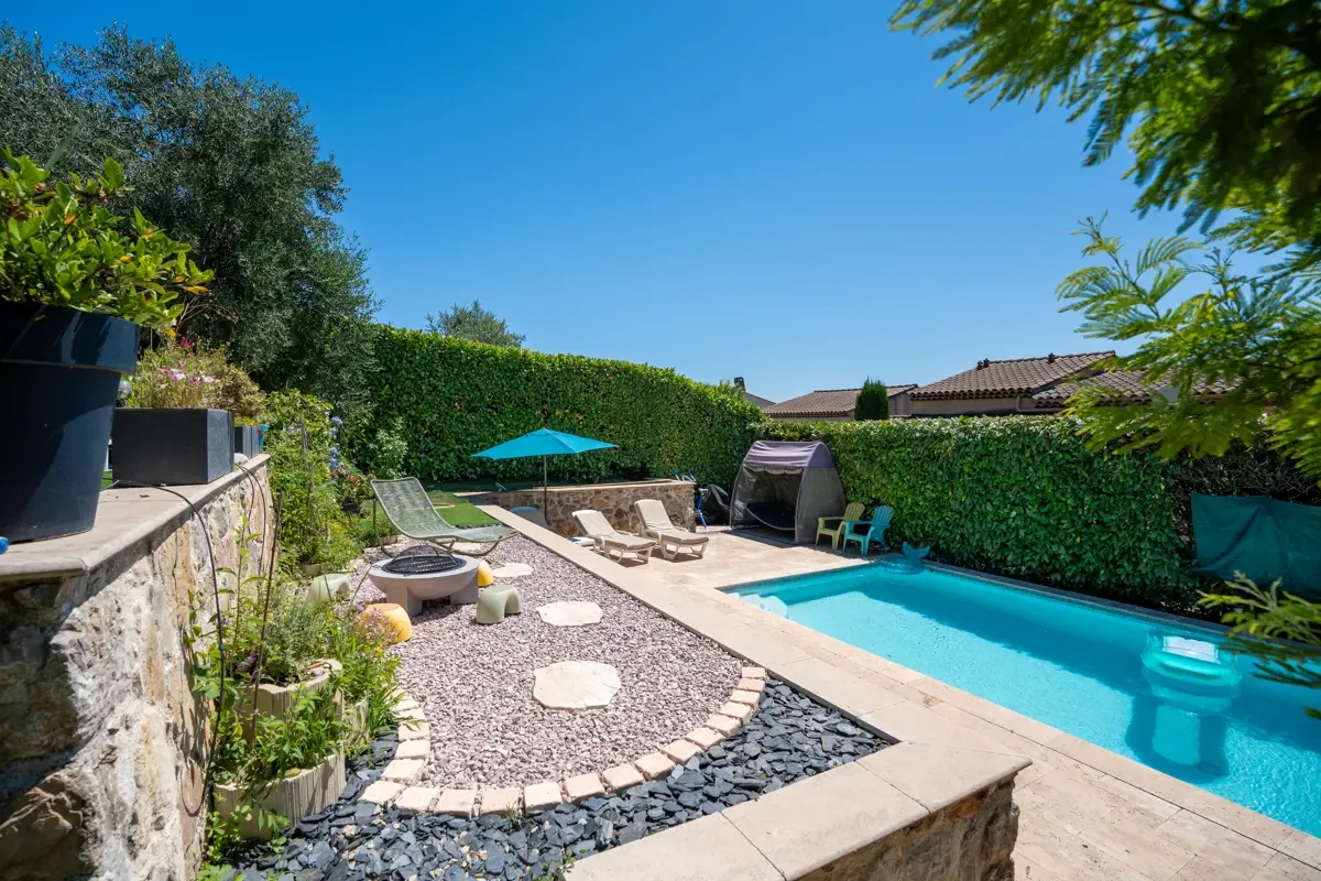 Sur une parcelle de 512 m² , la maison offre une terrasse et une piscine de 7,5 x 3,5. Une dépendance récente, moderne et climatisée de 12 m² avec son propre toilette complète l'ensemble, parfaite pour le télétravail.