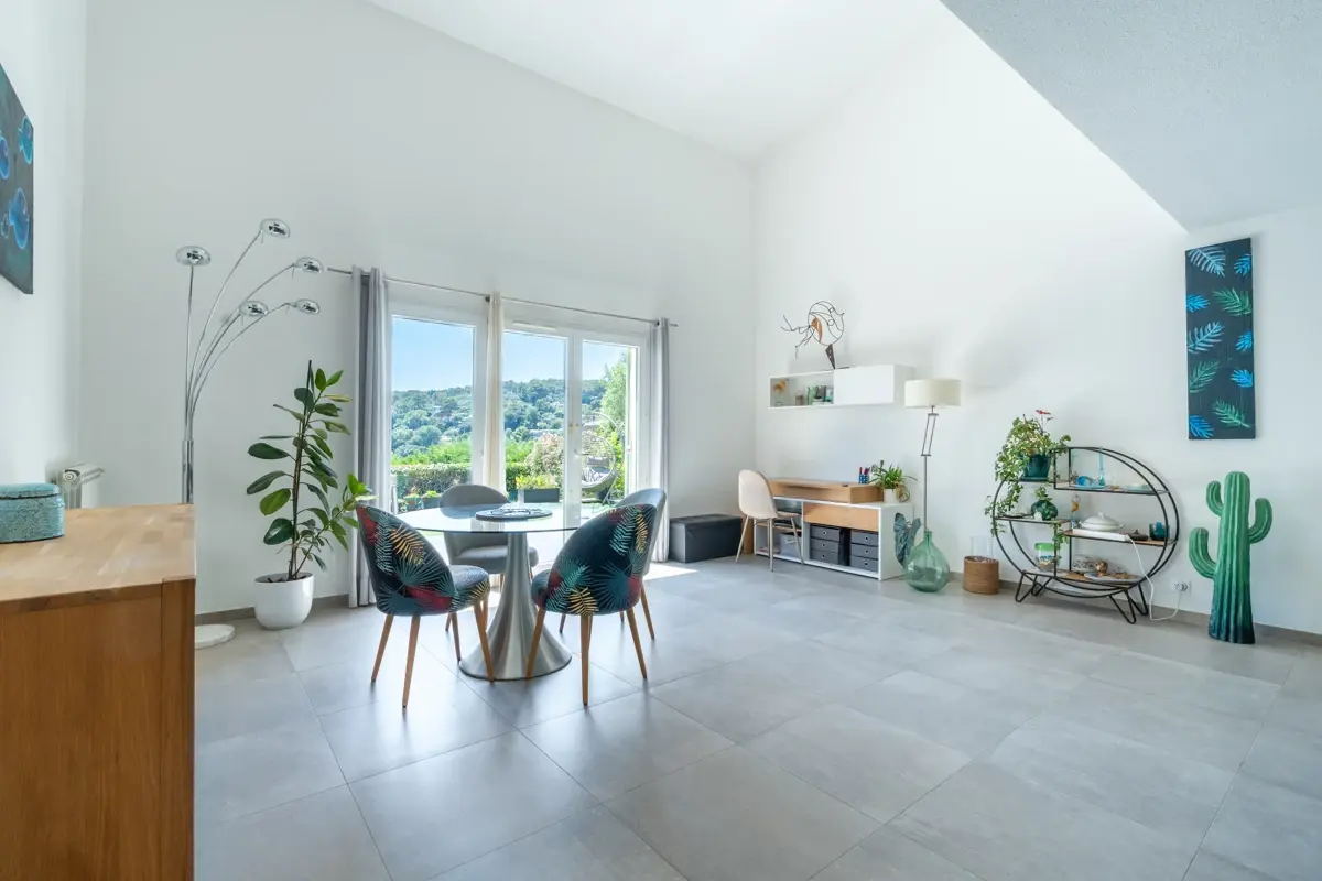 Située dans les hauteurs d'une copropriété calme et recherchée, la maison est à proximité des commerces, des écoles primaires et collèges et des services essentiels, offrant une vue dégagée et sans vis-à-vis.