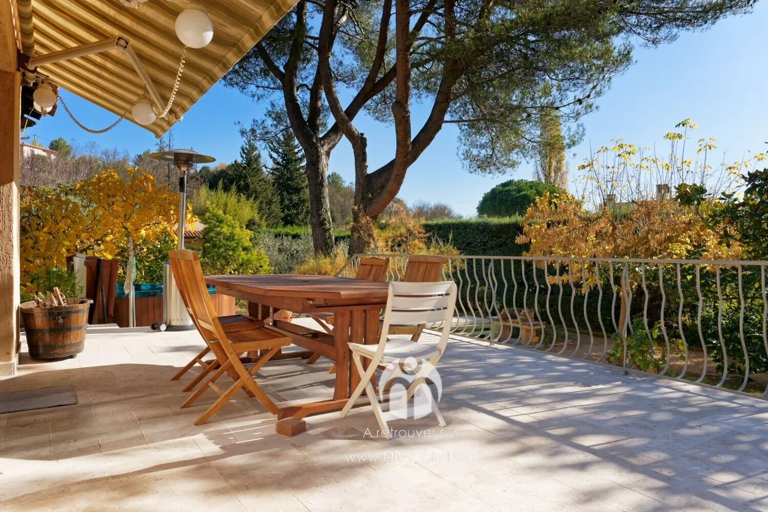 L’extérieur quant à lui d’une superficie de 3200m2, nous offre une vue magnifique sur les collines avoisinantes.
