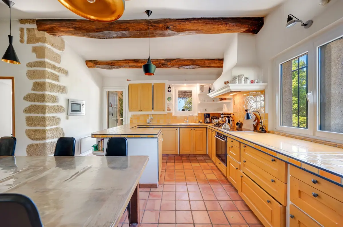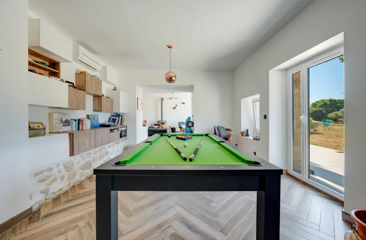 Toutes les pièces bénéficient de la climatisation réversible, et un poêle ajoute du confort au salon séjour et à la cuisine.