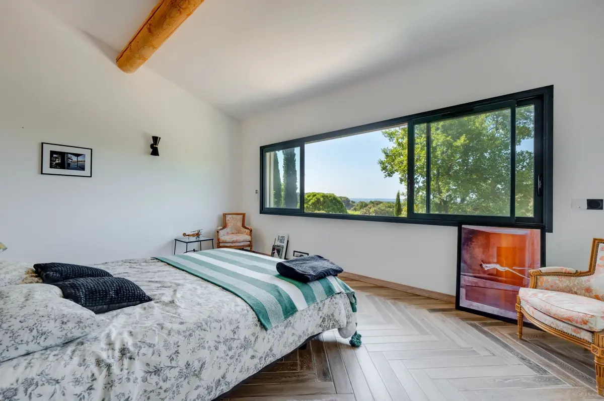 À l'étage, vous découvrirez une somptueuse suite parentale avec dressing et double salle de bain (douche à l'italienne et baignoire), avec accès direct à la piscine.