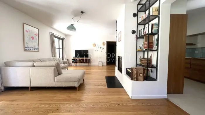 La maison comprend trois chambres dont une suite parentale avec salle d’eau et dressing, une cuisine aménagée, un séjour, une buanderie, et une salle de bains. Entièrement rénovée, elle est complétée par une piscine et un jardin. Système de chauffage : climatisation réversible, convecteurs électriques et cheminée.