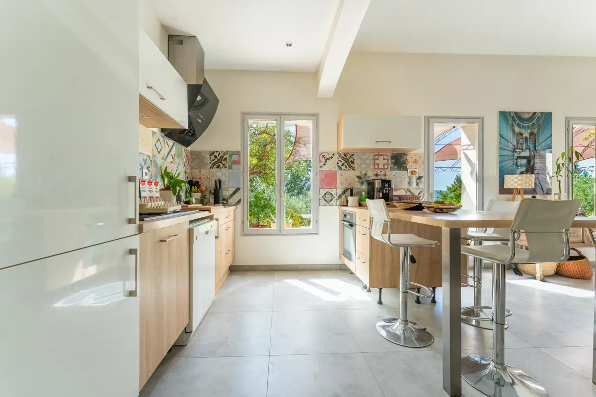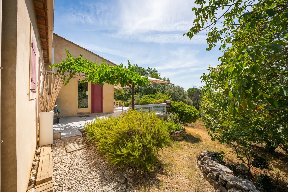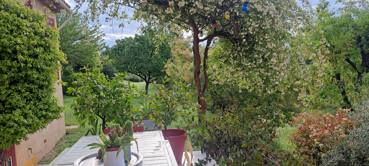 Profitez d'une vaste terrasse ensoleillée, parfaite pour la détente et l'entrée de lumière naturelle, complétée par un jardin arboré et un espace clôturé pouvant accueillir une piscine.