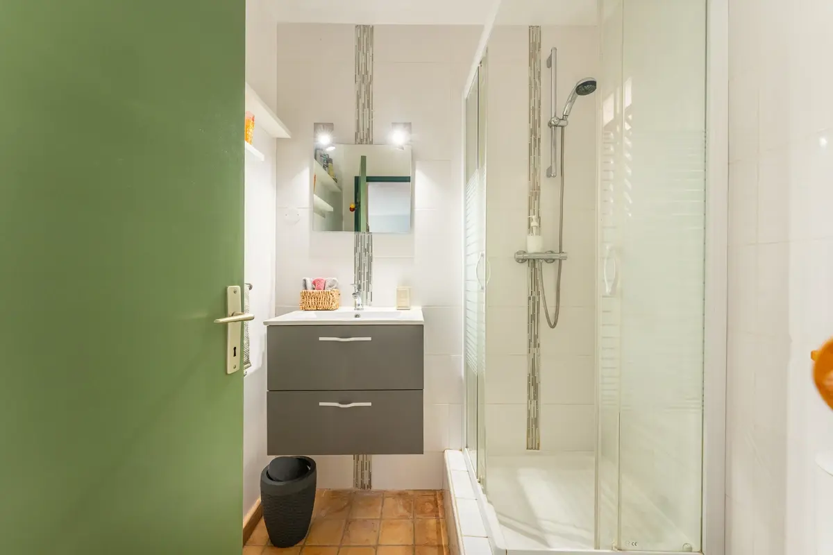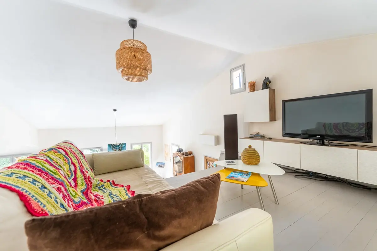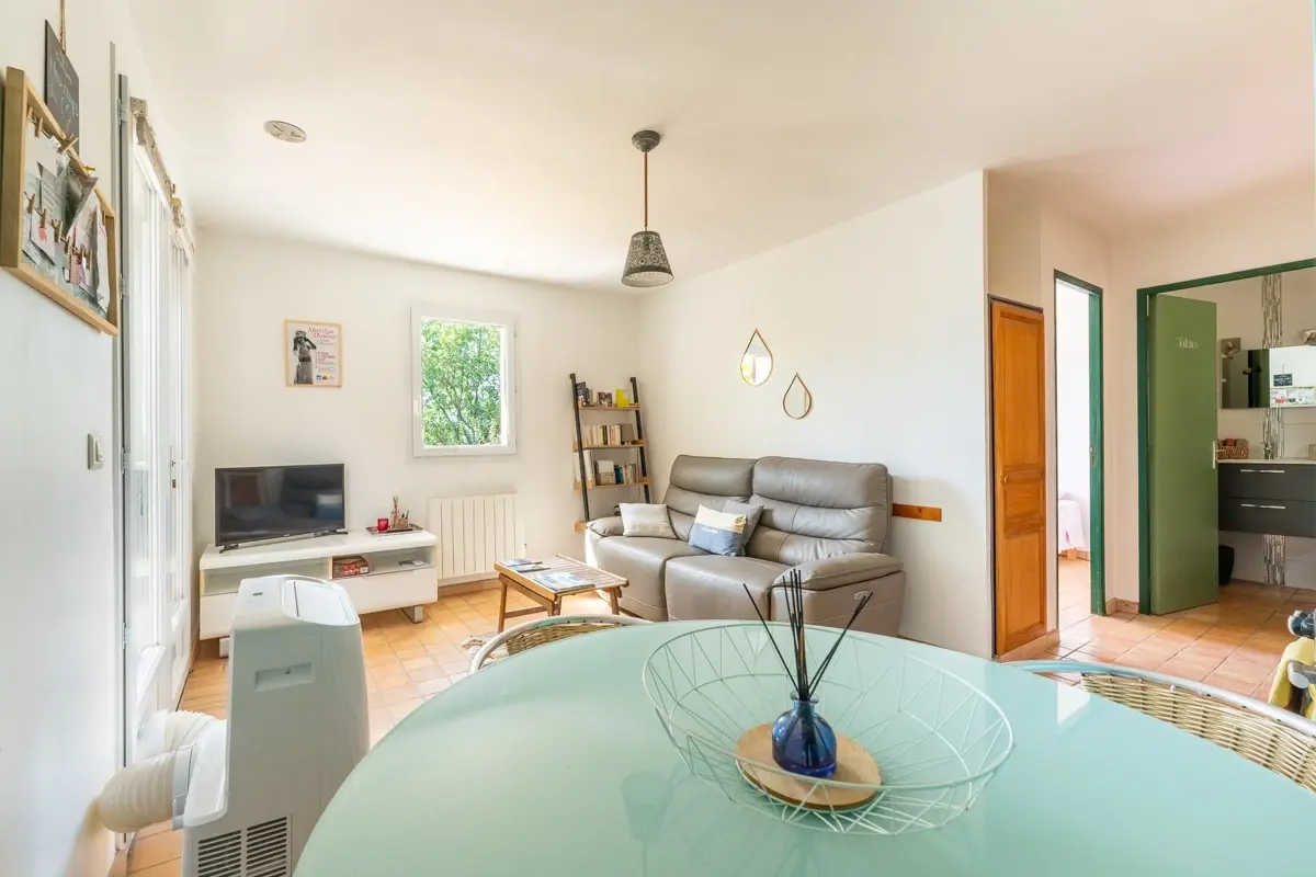 À côté, un appartement de 33 m² avec terrasse privative peut servir de revenu locatif ou d'hébergement d'invités.