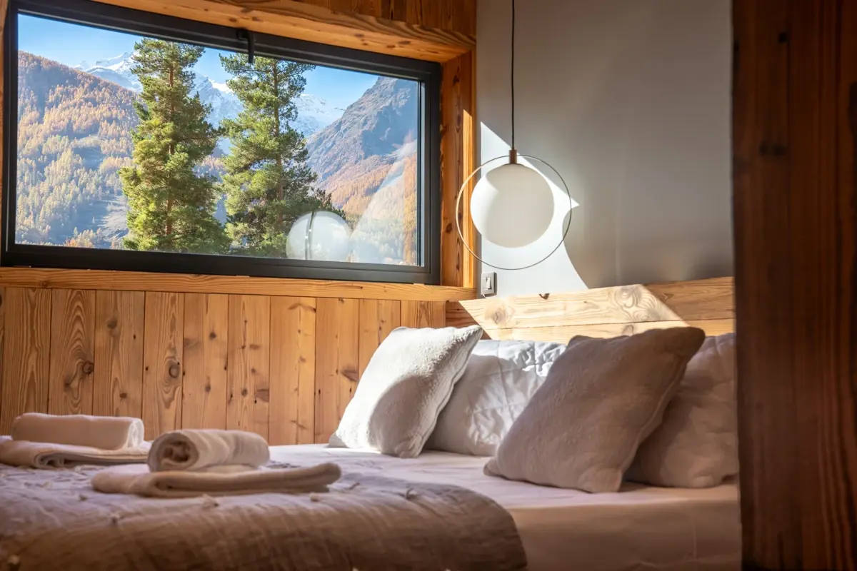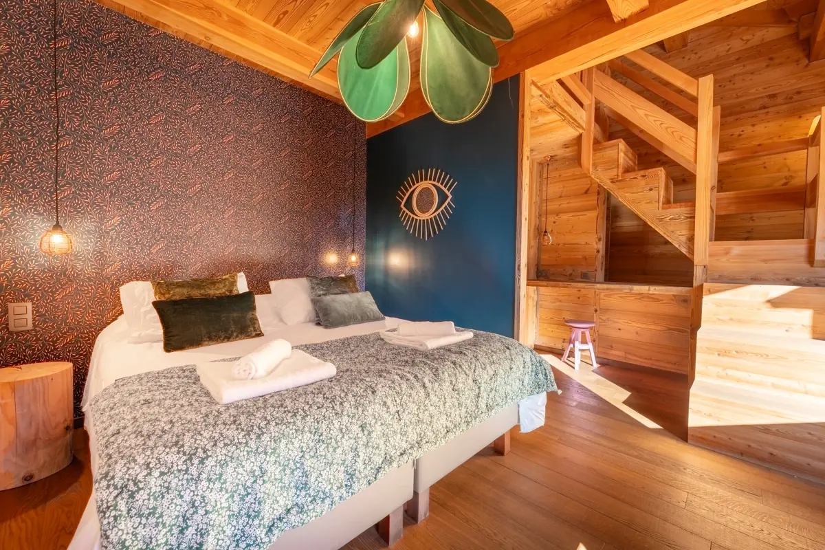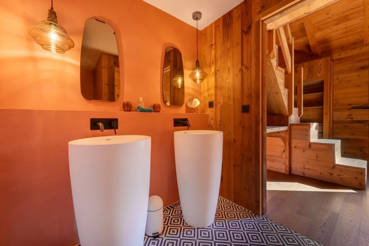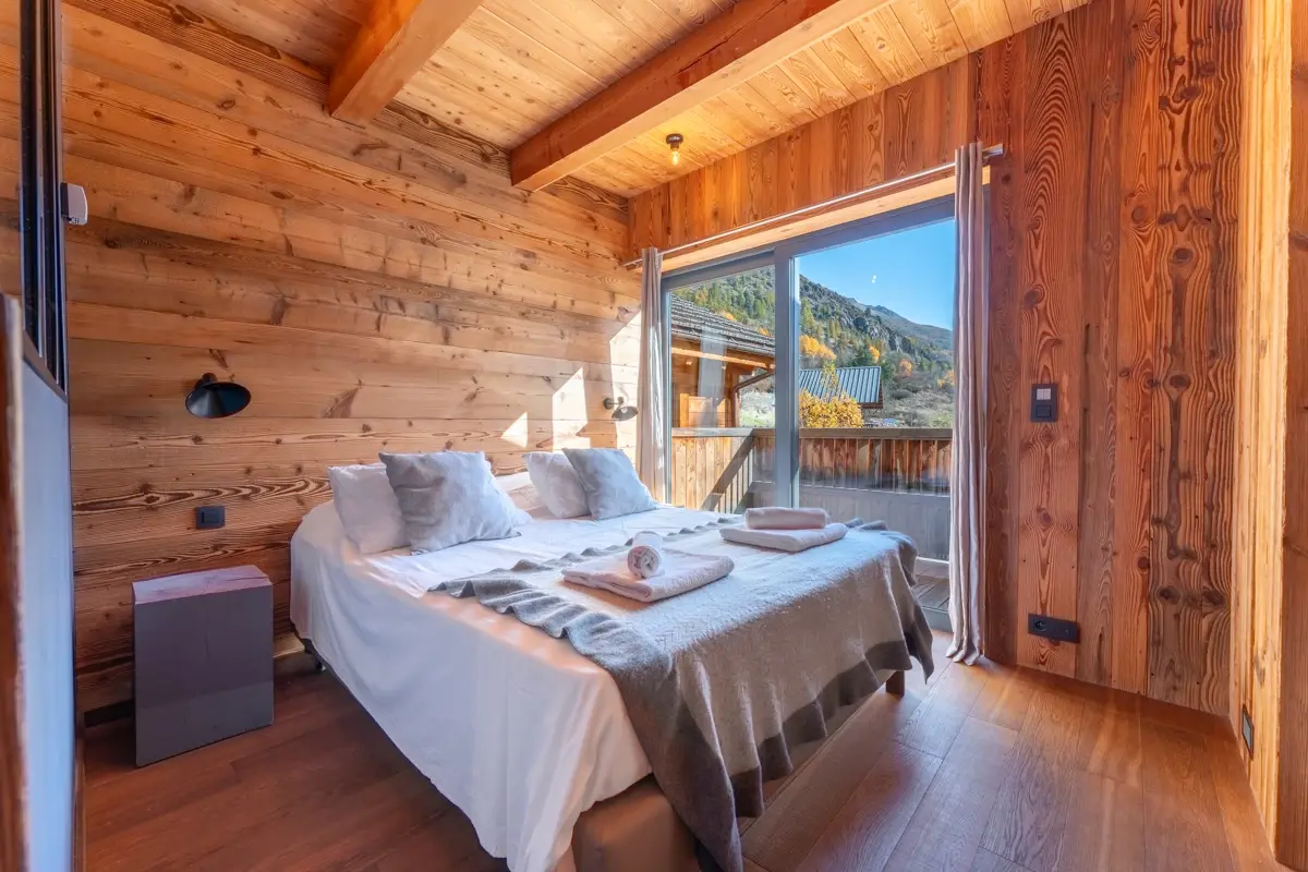 Le chalet peut accueillir 15 personnes avec ses 7 chambres, dont une suite parentale avec mezzanine et une master room avec salle de bain. Cinq salles de bain sont à disposition pour un confort optimal.