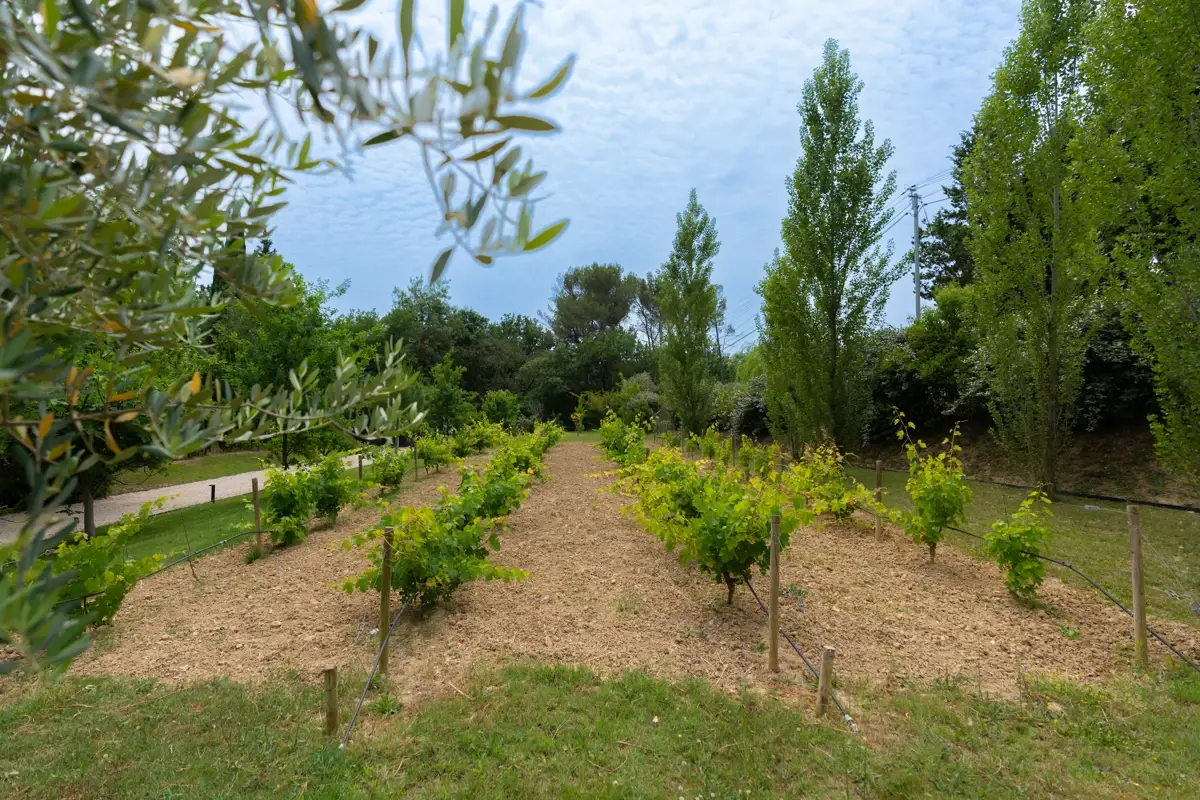 Le terrain paysagé de près de 3 400 m² comprend un espace piscine entouré de verdure, idéal pour la détente et les loisirs.