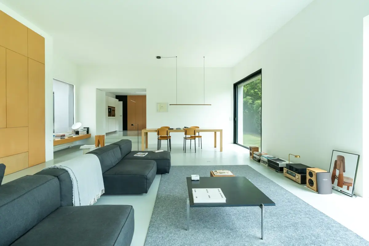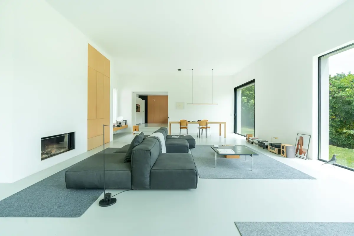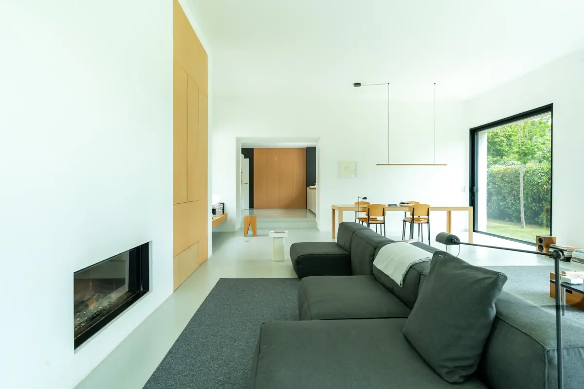 Cette villa séduit par son vaste séjour de 60 m², agrémenté d'une cheminée et d'une belle hauteur sous plafond, baigné de lumière grâce aux grandes baies vitrées.
