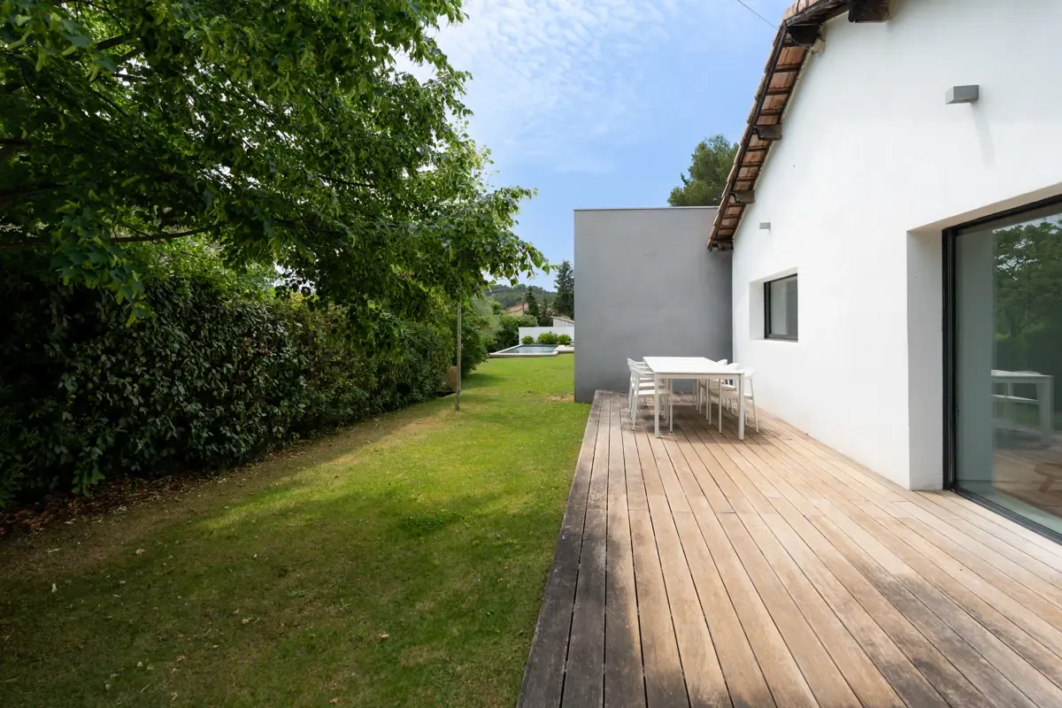 L’Office Immobilier d'Aix-en-Provence vous présente à la vente une maison contemporaine de plain-pied de 185 m², à seulement 10 minutes du centre-ville.