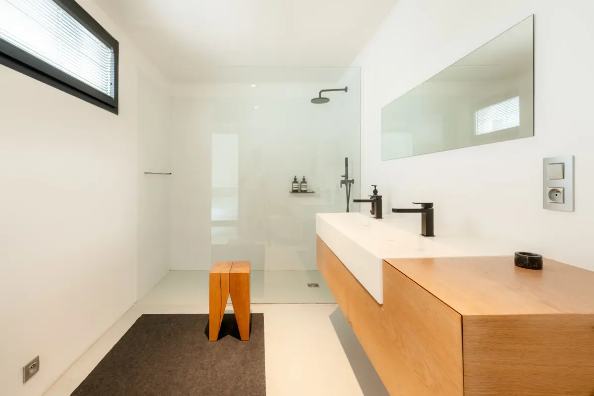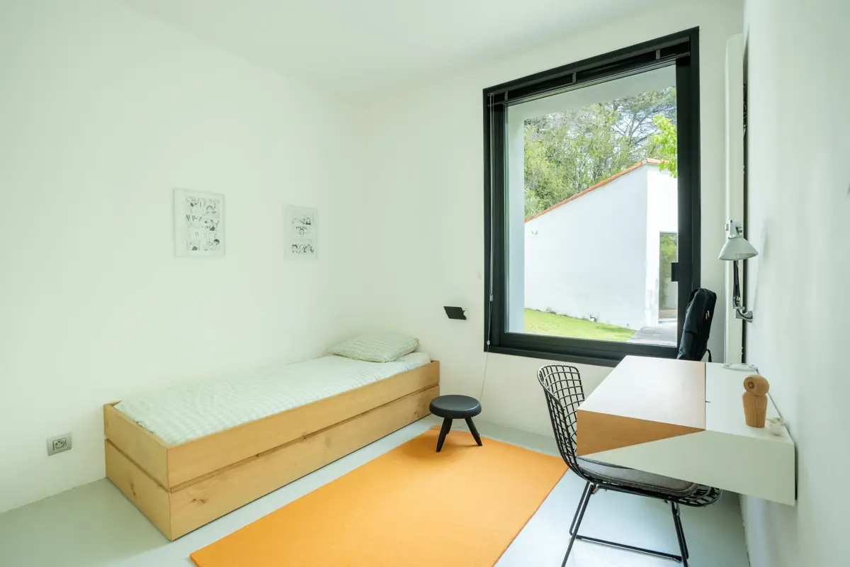 On trouve également une cuisine équipée, un bureau, une buanderie et une salle de bain. L'espace nuit se compose de trois chambres, dont une suite parentale avec dressing et salle d'eau.