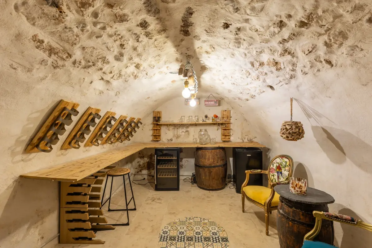 La maison est complétée par un garage fermé 17m2 et une très jolie cave aménagée de 18m2.
