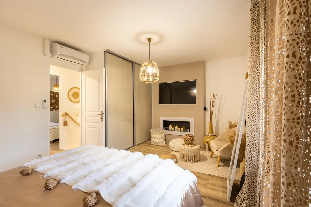 Vous pourrez retrouver également deux cheminées au bioéthanol dans l'espace de vie et la chambre parentale.
