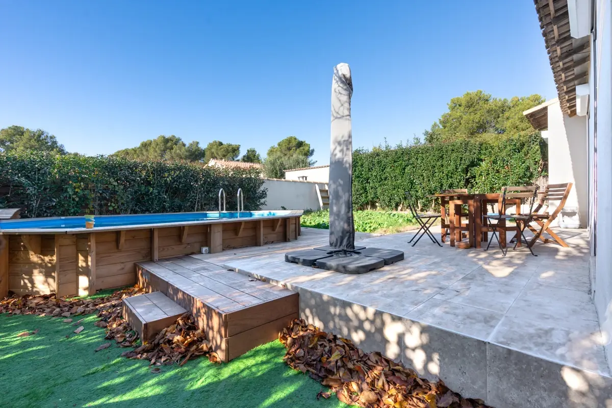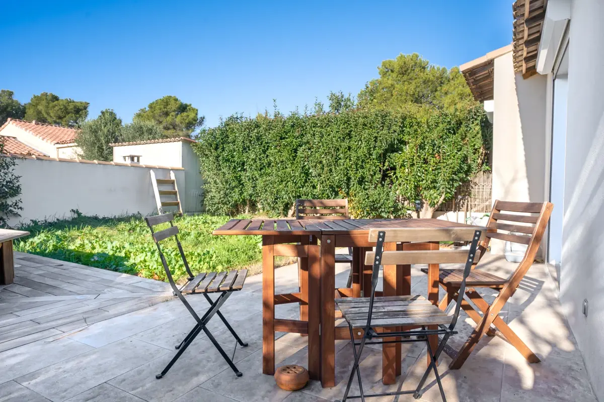 L’Office Immobilier des Pennes Mirabeau vous présente à la vente cette jolie maison rénovée de 116 m² dont 20 m2 de garage avec jardin et piscine, située au calme dans une résidence proche de la forêt de l'Arbois et des villages de Calas/Cabriès.