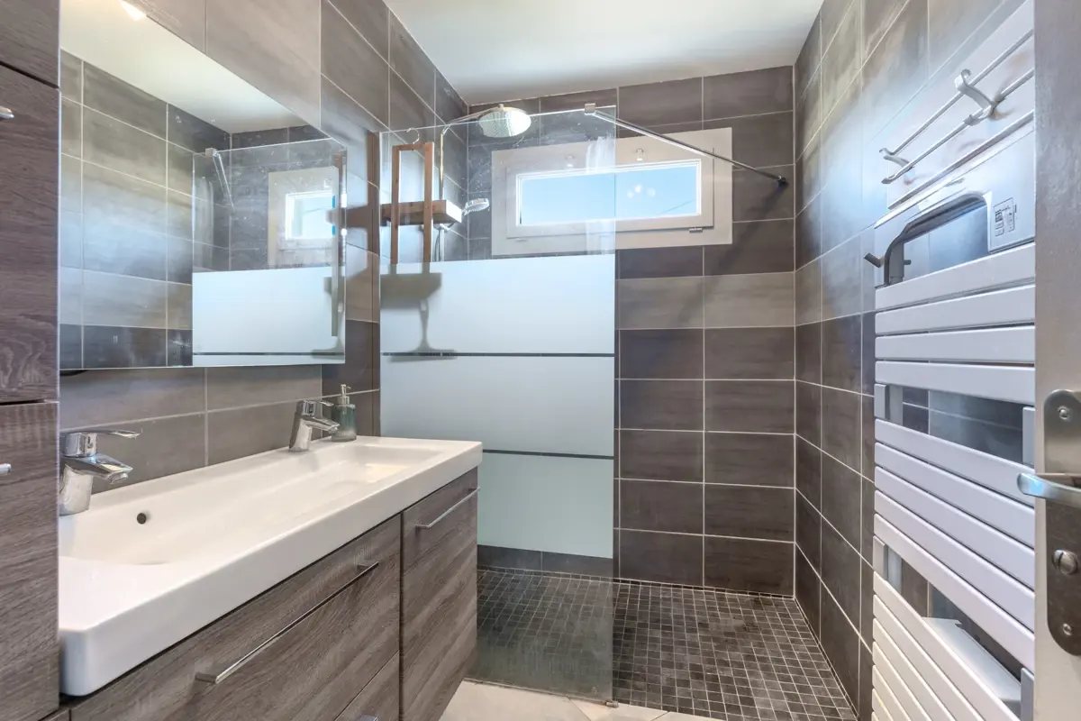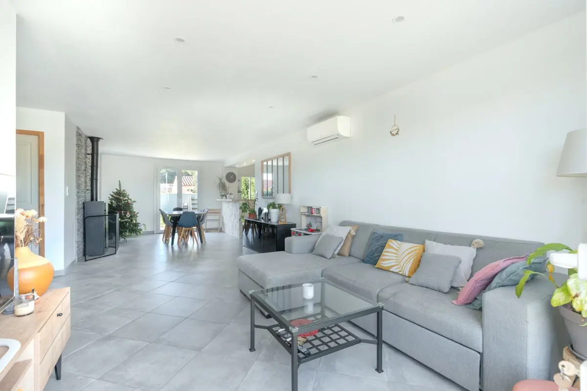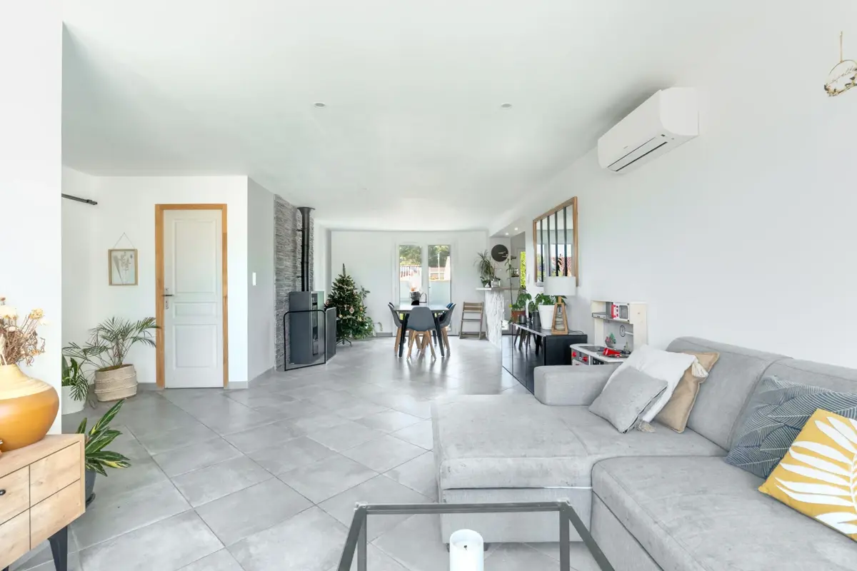 la maison est équipée d'un poele à granule , une climatisation réversible et des panneaux solaires pour réduire les factures d'énergie.