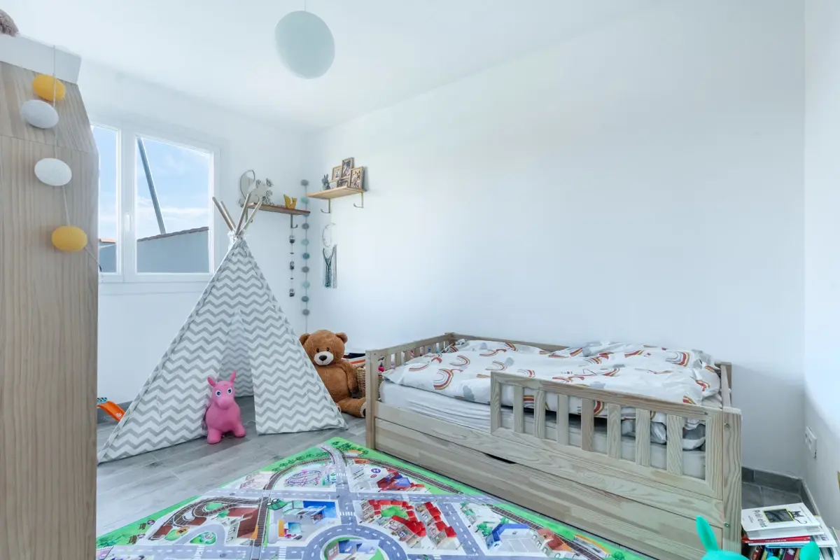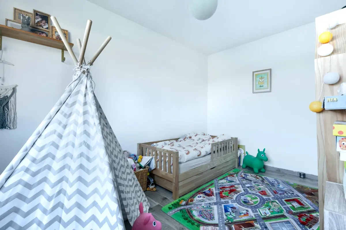 La partie nuit comprend trois belles chambres avec placard et une salle de bain moderne avec des toilettes séparées.