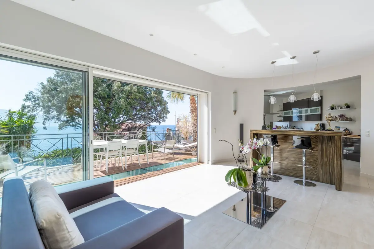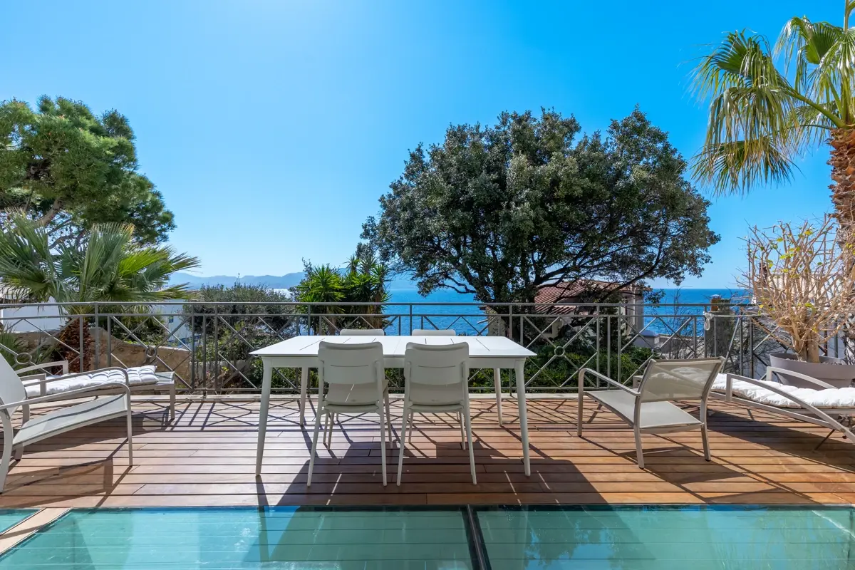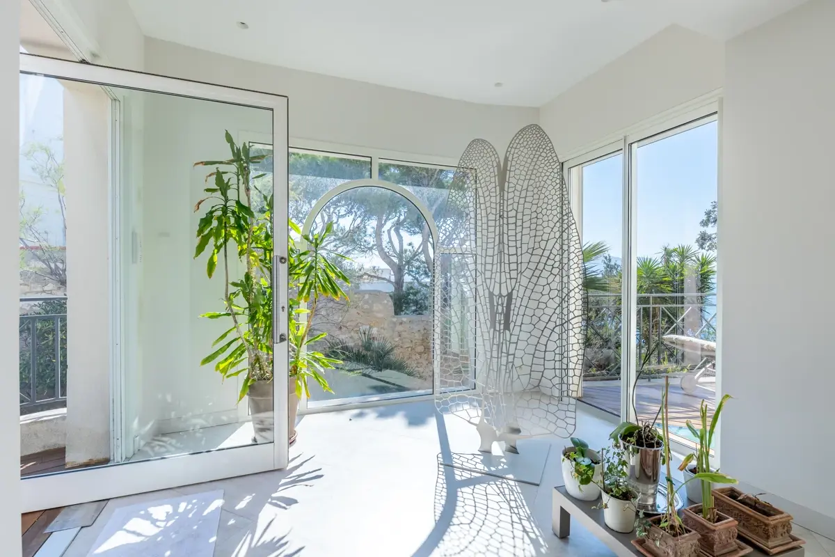 Cette maison lumineuse offre un vaste séjour avec vue mer et une terrasse attenante orientée sud, une cuisine ouverte avec cellier et un bureau. La partie nuit comprend une suite parentale avec terrasse privative, dressing et salle de bains, ainsi que deux chambres avec salle d'eau et un appartement indépendant au rez-de-jardin. Le dernier étage est quant à lui un bel espace ouvert (coin lecture, bureau) sous les toits, jouissant d'une terrasse panoramique sur la mer.