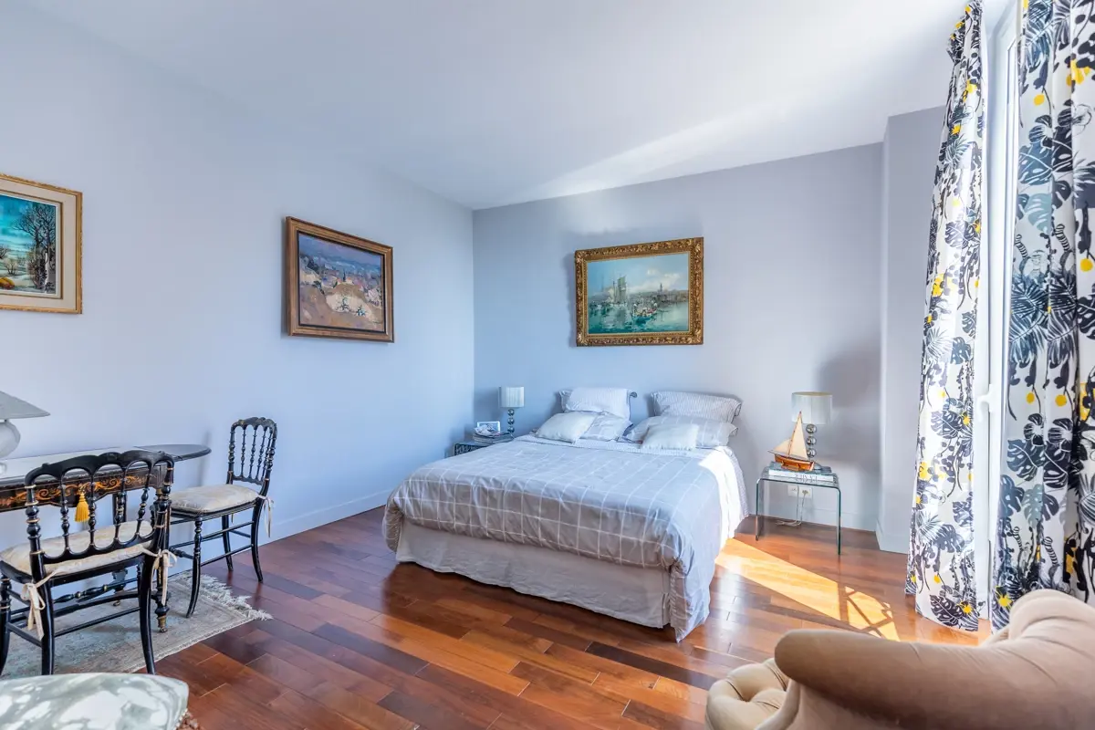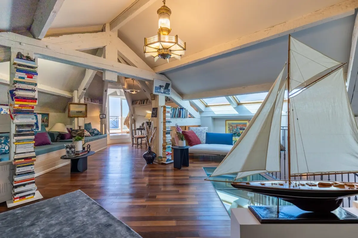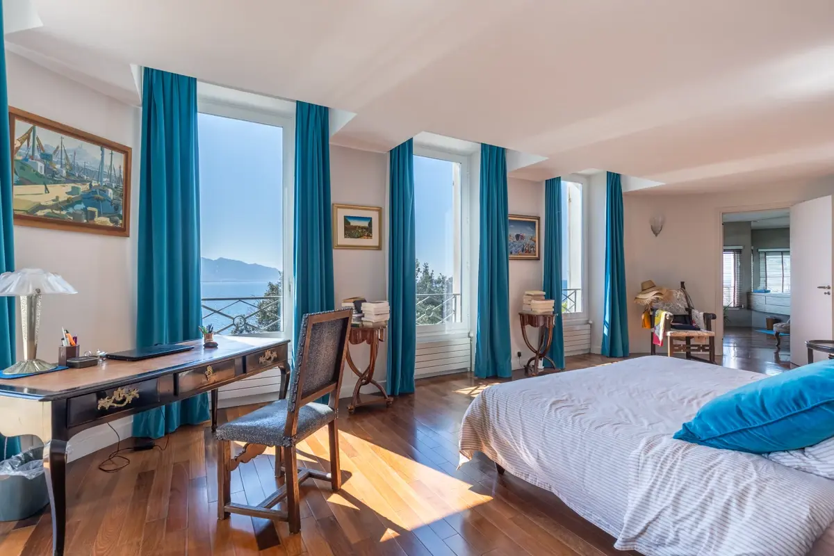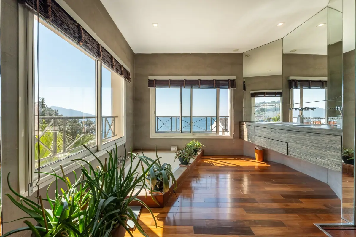 Cette maison lumineuse offre un vaste séjour avec vue mer et une terrasse attenante orientée sud, une cuisine ouverte avec cellier et un bureau. La partie nuit comprend une suite parentale avec terrasse privative, dressing et salle de bains, ainsi que deux chambres avec salle d'eau et un appartement indépendant au rez-de-jardin. Le dernier étage est quant à lui un bel espace ouvert (coin lecture, bureau) sous les toits, jouissant d'une terrasse panoramique sur la mer.