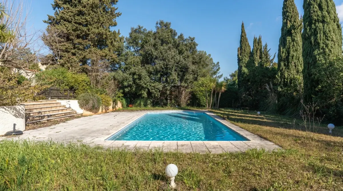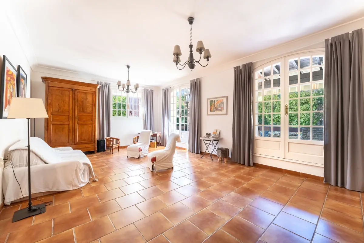 🛋️ Description intérieure : Avec ses 180 m² habitables, la maison propose 7 pièces aux volumes généreux. Le séjour donne sur une première terrasse, la cuisine est indépendante et la salle à manger spacieuse et lumineuse ouvre sur une deuxième terrasse et sur le jardin arboré à la vue dégagée.