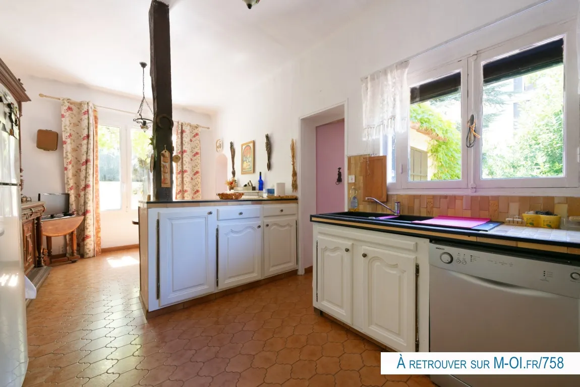 Mon Office Immobilier vous propose à la vente une maison de type 5 avec un garage dans un jardin arboré en plein coeur de Jonquières.