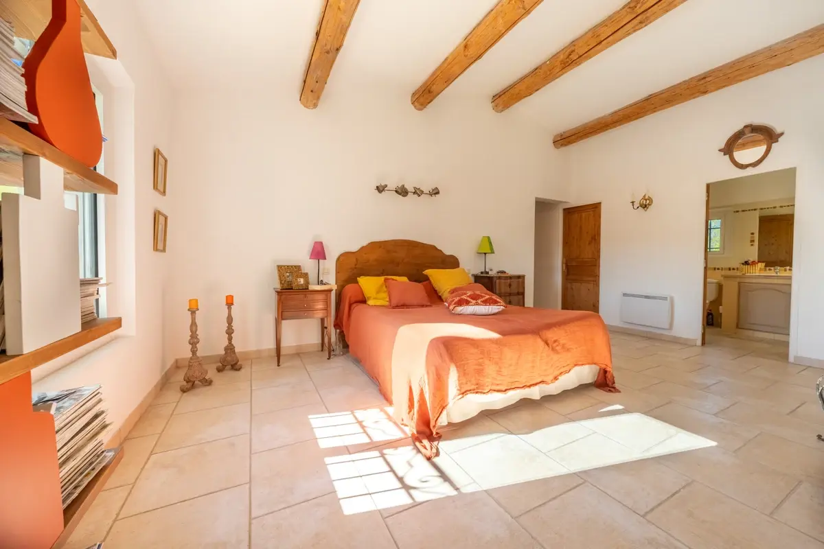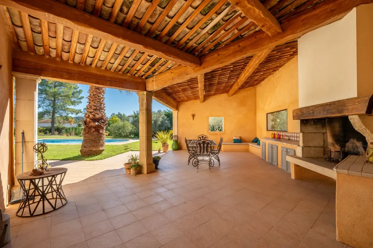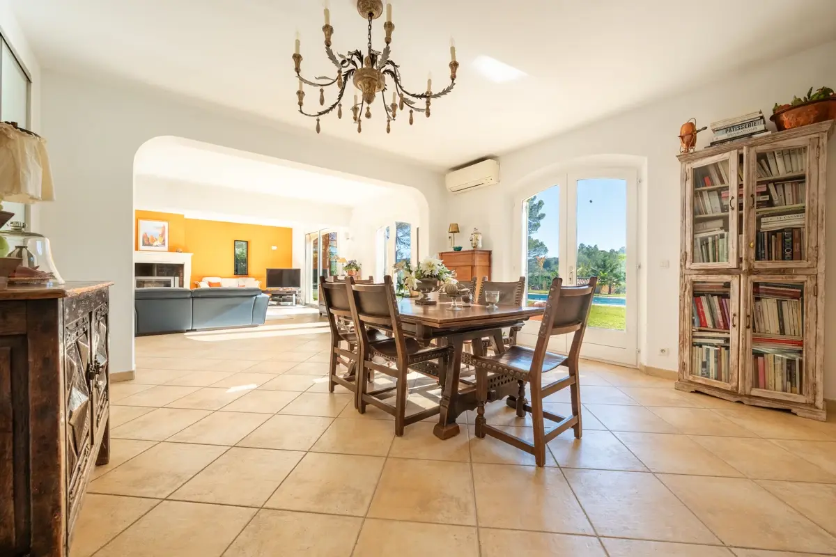 🏡 Edifiée sur 3800 m² de terrain avec jardin paysager planté d'essences méditerranéenness, la bastide, de 2005 offre 224 m² habitables et dessert un salon séjour avec une cheminée en pierre, une salle à manger et une cuisine Artek de 2024 avec arrière cuisine. Les volumes sont généreux, la pièce de vie bénéficie de 80 m² habitables. Elle s'ouvre sur une terrasse exposée Sud, grâce à ses deux portes fenêtres et grande baie.