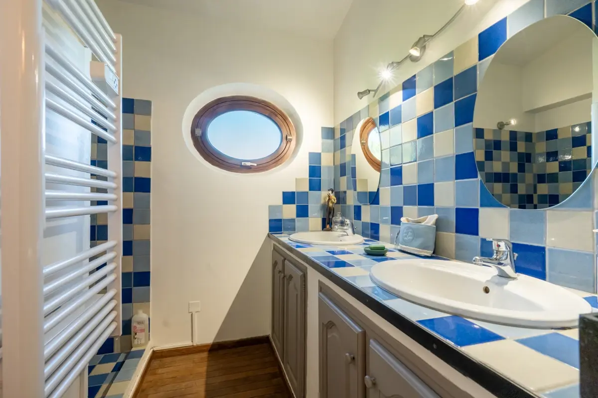 🛏️ Coin nuit : Au rez de chaussée une suite parentale avec placard dressing, salle d'eau et WC individuel et à l'étage deux chambres, une salle d'eau, un WC séparé et une suite parentale de 20 m² avec sa salle de bain et une pièce dressing équipé.