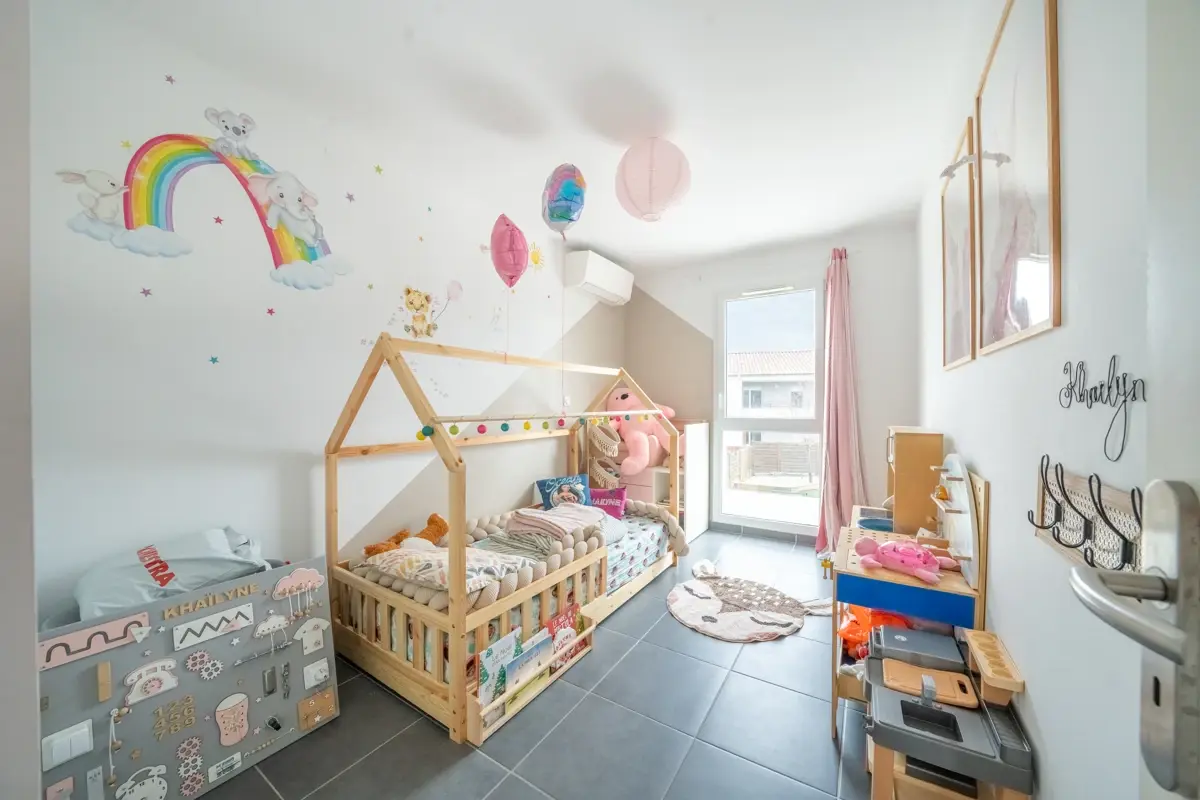 À l’étage, deux chambres lumineuses composent l’espace nuit, accompagnées d’une seconde salle d’eau et d’un WC indépendant, offrant confort et praticité au quotidien.