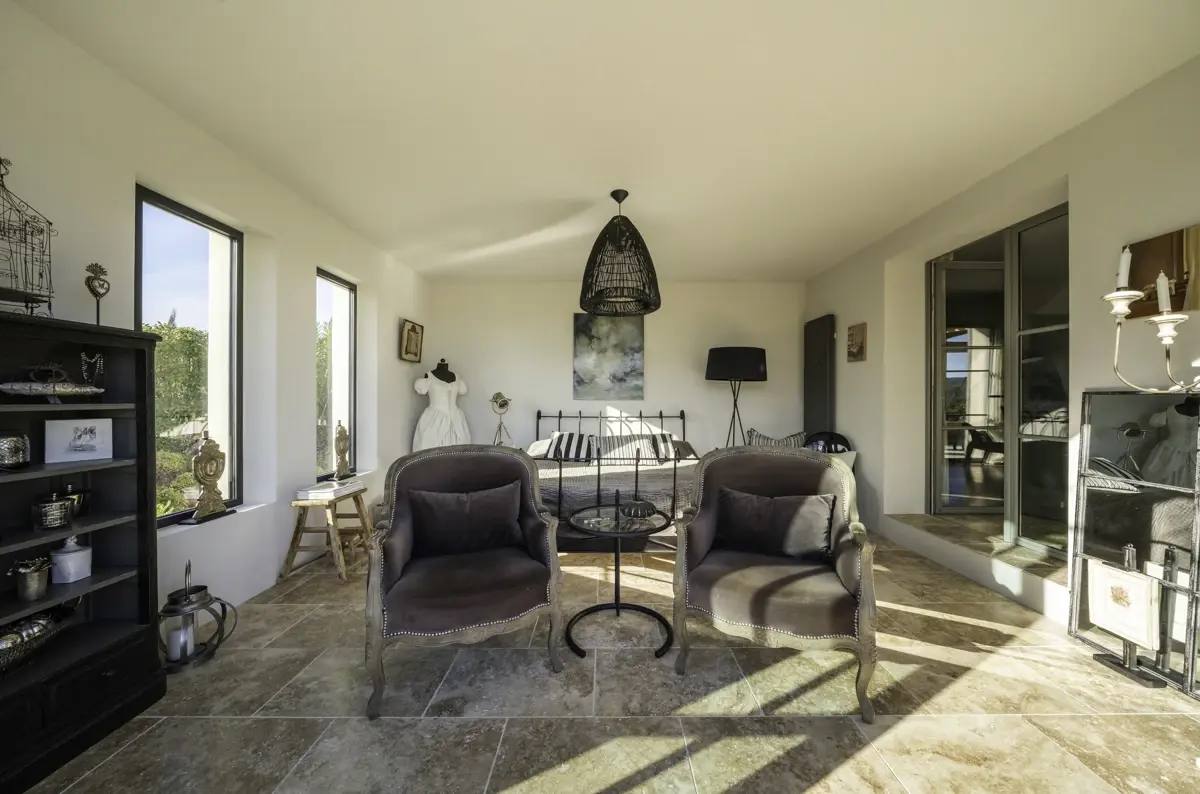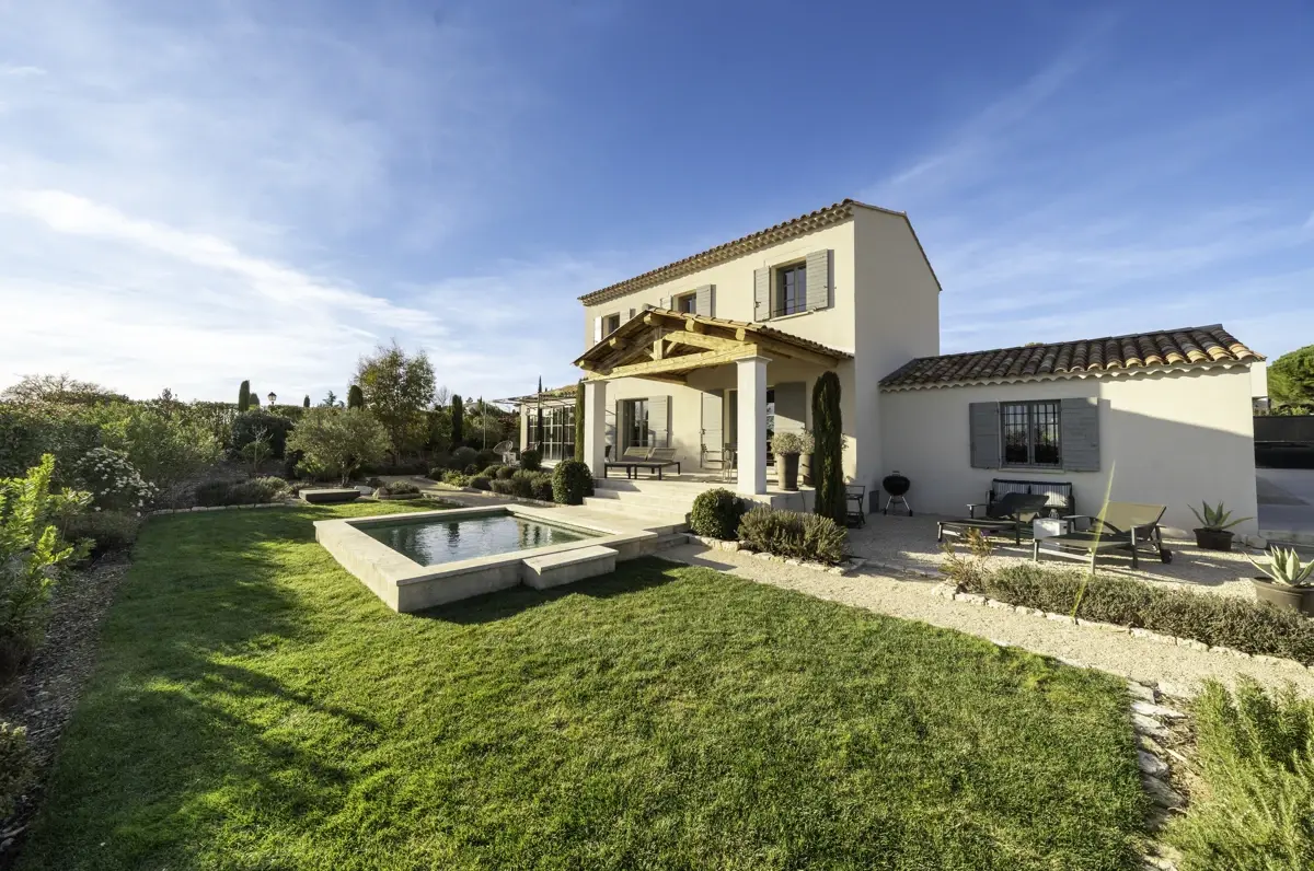 Mon Office Immobilier du Luberon vous présente à la vente cette bastide contemporaine de 2022, située à cinq minutes du village emblématique de Lourmarin.