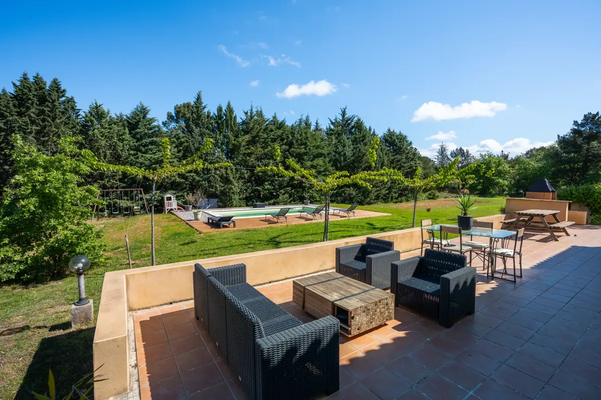Sur un terrain clos et verdoyant de 4800 m², profitez d'un bel espace piscine (datant de 2023 et traitée au sel) et d'un jardin aux essences provençales. Plusieurs terrasses, tout autour de ce bien entretenu, offrent des espaces détente en toutes saisons.