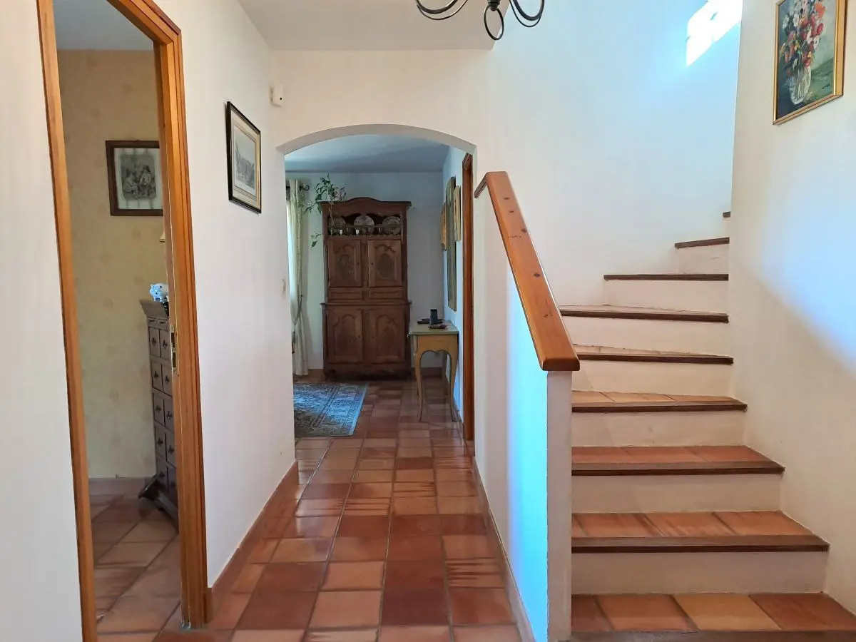 🏡 Description intérieure : Construite en 1993 et agrandie plus récemment, elle allie confort et charme. Au rez-de-chaussée, une entrée, une cuisine séparée avec cellier, un séjour lumineux d'environ 50 m² avec cheminée, ouvrant sur une terrasse ensoleillée. un bureau, une bibliothèque et une suite parentale de 17 m² avec dressing équipé de 5 m², salle de bain et wc. Les pièces du rez de chaussée sont toutes ouvertes sur l'extérieur. A l'étage, trois chambres, une salle d'eau et wc.