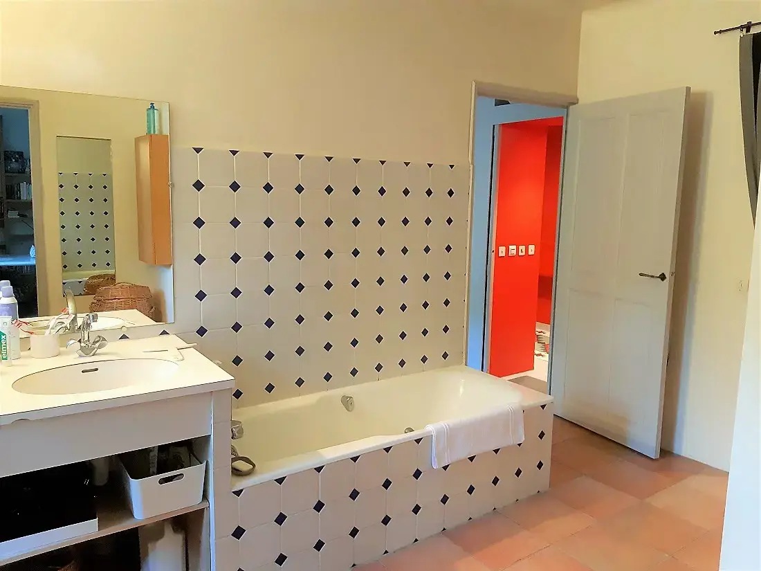 🏡 Description intérieure : salon voûté de 120 m² avec belle hauteur sous plafond. Quatre chambres 2 salles de bain, 2 salles d'eau dans la partie principale, deux chambres supplémentaires avec salle d'eau en dépendance. Grenier aménageable. Cette bâtisse est en très bon état offrant un bel espace de vie réparti sur plusieurs pièces, incluant une climatisation et chauffage au fuel. Construite en 1694, elle marie l'authenticité au confort moderne.