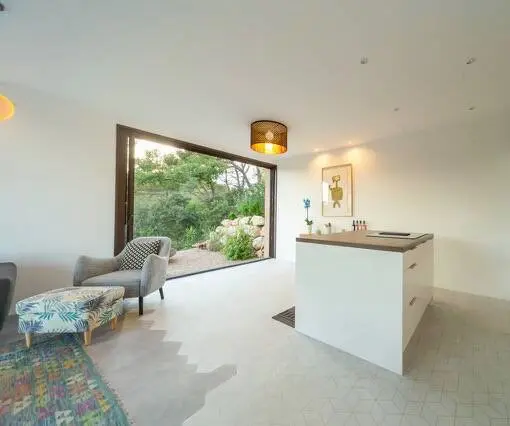 Nichée sur les hauteurs à quelques pas du village Rognes dans le domaine du Pie Fouquet, cette maison contemporaine s'intègre harmonieusement dans son cadre naturel en restanques sur la colline boisée.