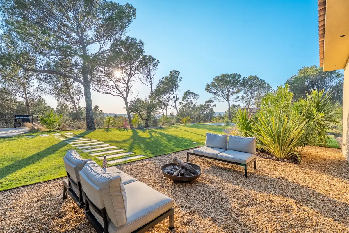 🌳 Avantages extérieurs : Le jardin arboré d’essences méditerranéennes, d’environ 6 000 m², profite d’une vue imprenable sur le village. Il accueille de nombreux espaces de détente : piscine, pool-house, brasero, boulodrome ainsi que plusieurs terrasses ombragées. Un soin particulier a été apporté au paysagement et à l’éclairage permettant de profiter du cadre, de jour comme de nuit.