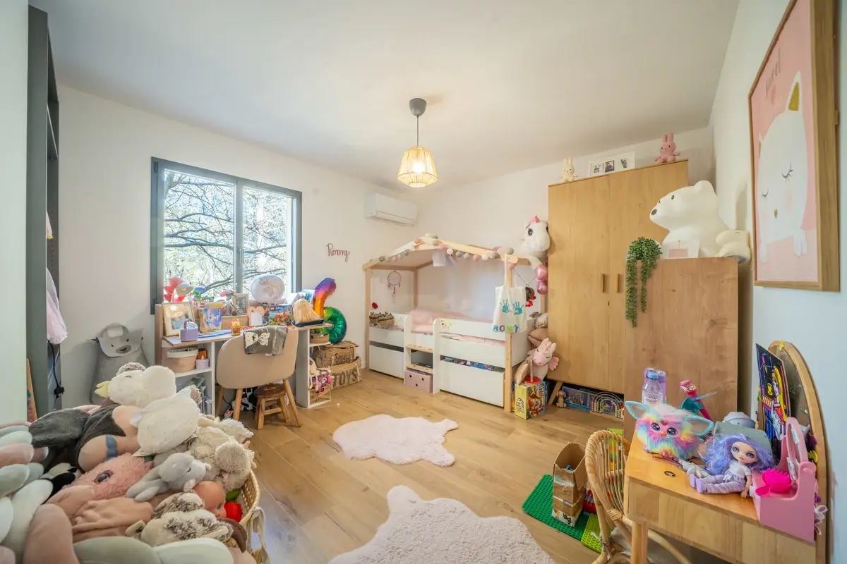 🛏️ Partie nuit : L’espace nuit comprend 4 chambres, dont une suite parentale avec salle de bains et dressing, ainsi qu’une salle d’eau indépendante. Les chambres offrent des volumes généreux, et la distribution est idéale pour une famille.